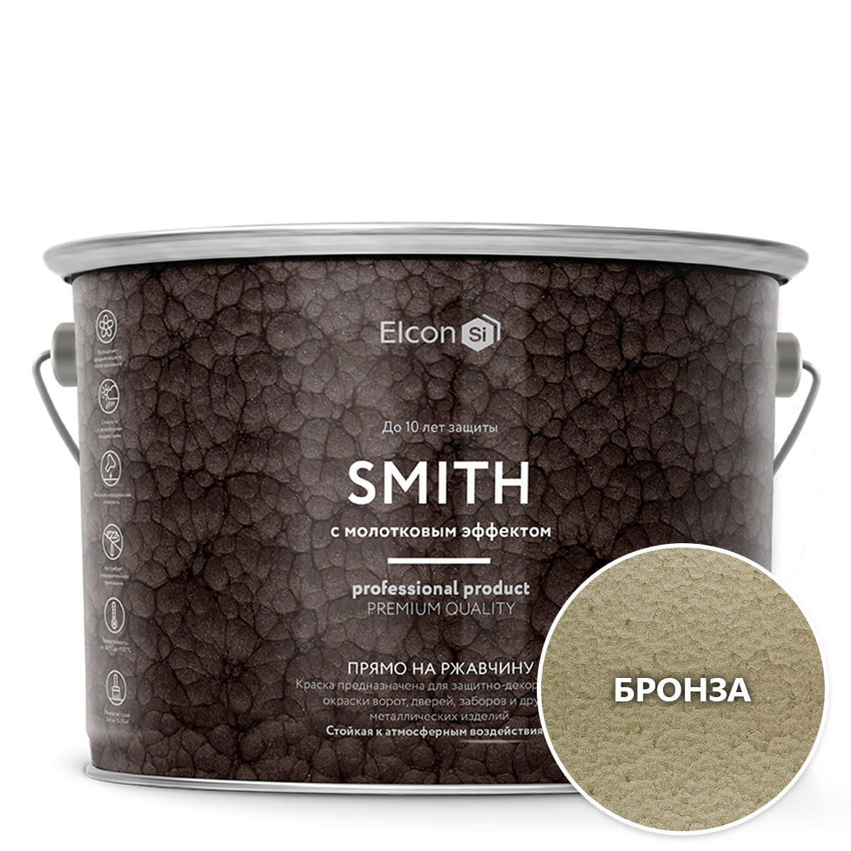 Краска Elcon Smith (с молотковым эффектом) Молотковая, Алкидная, Матовое покрытие, 2 кг, бронза