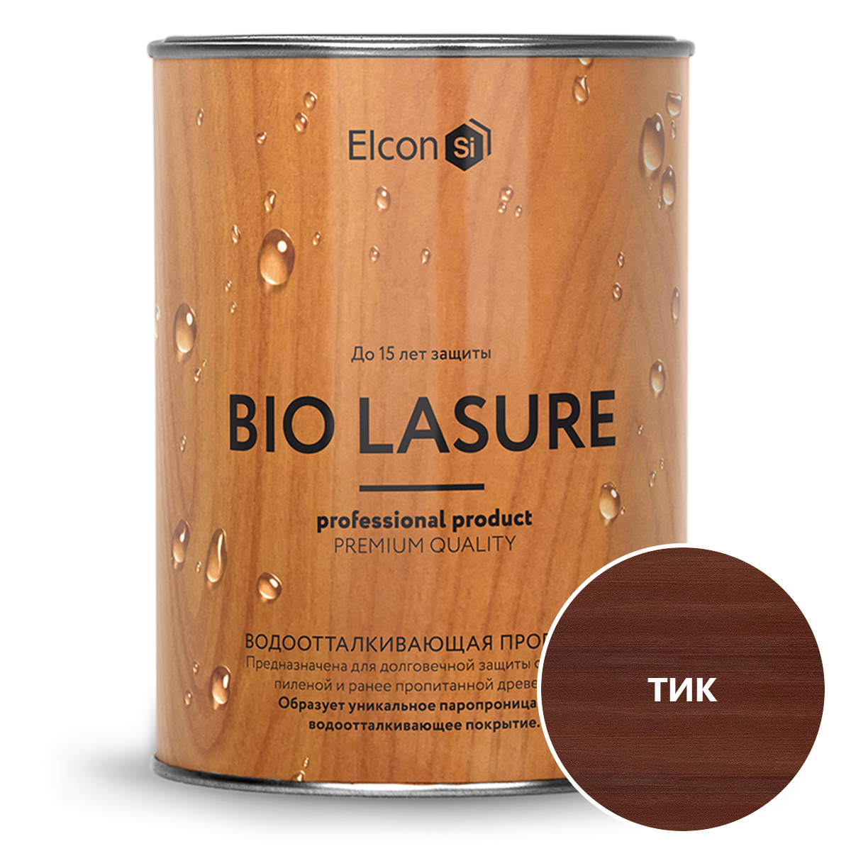 Elcon Bio Lasure / Водоотталкивающая пропитка для защиты дерева до 15 лет, тик (0,9л)