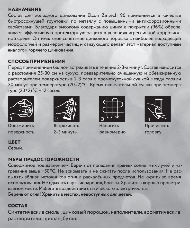 Грунт-эмаль Elcon Zintech 96%, цинковый грунт, 0,52 л, серый
