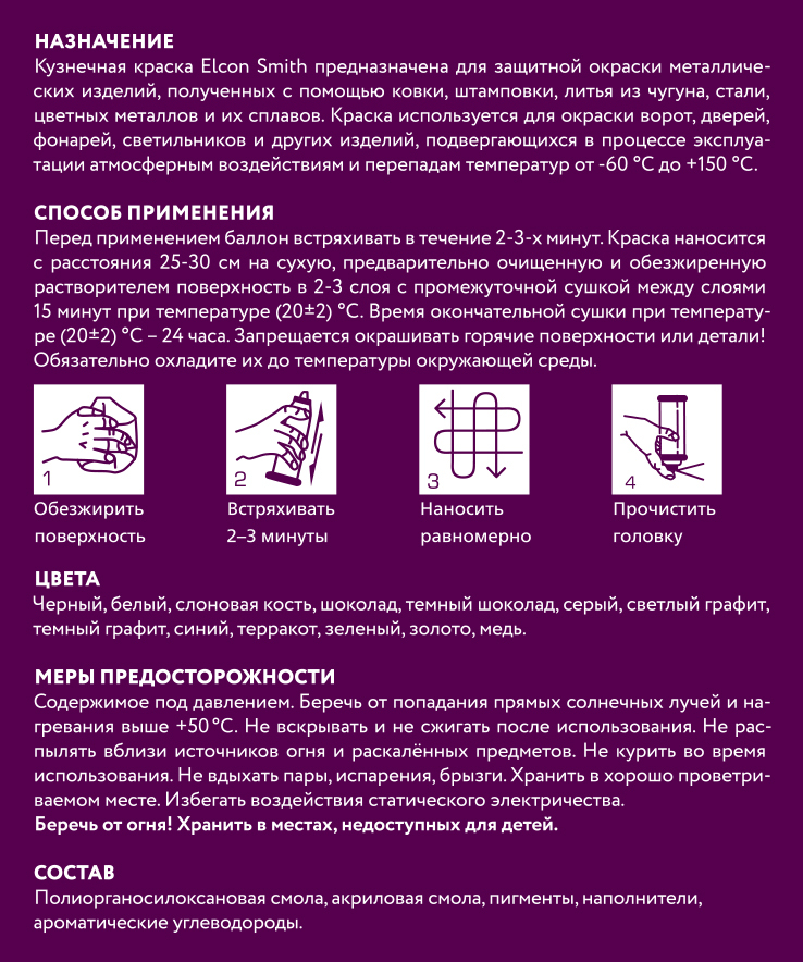 Краска Elcon Smith (с молотковым эффектом) Молотковая, Алкидная, Матовое покрытие, 2 кг, медь