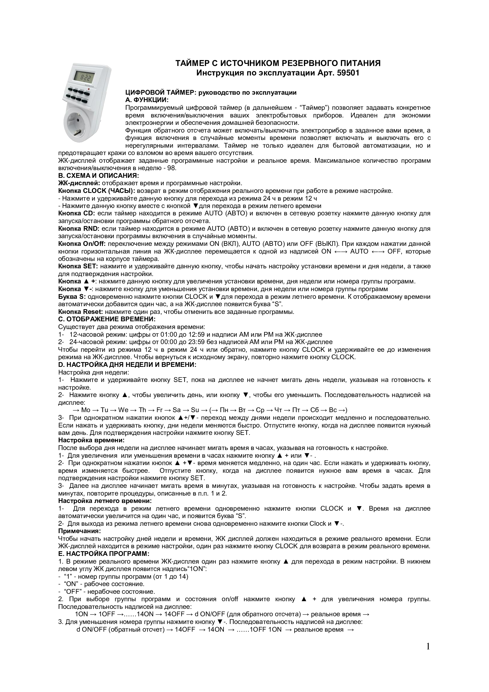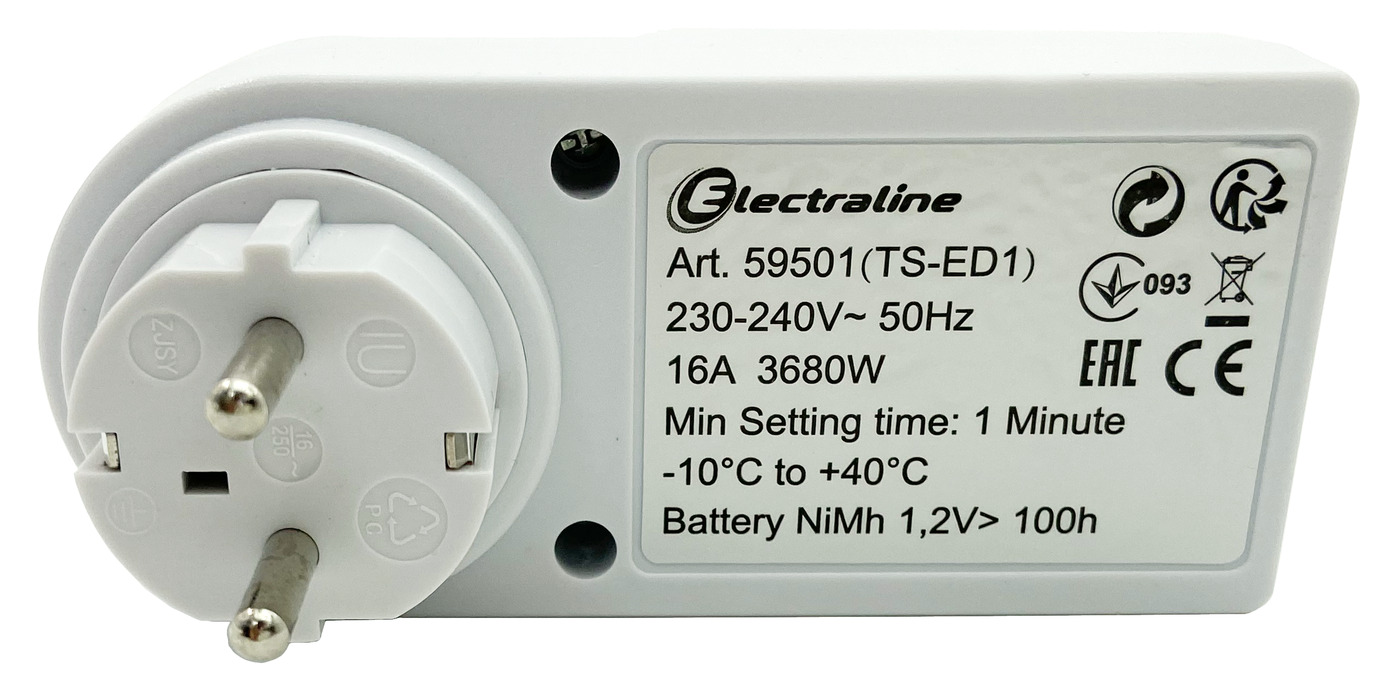 Таймер Electraline недельный, 49 программ с источником резервного питания 100 часов, МИНИ