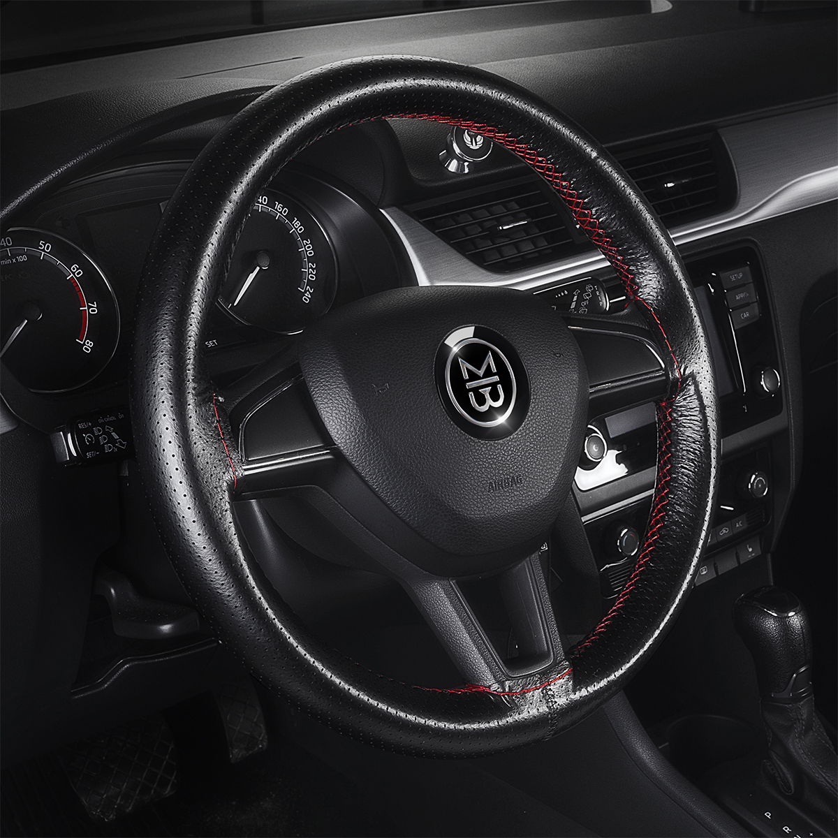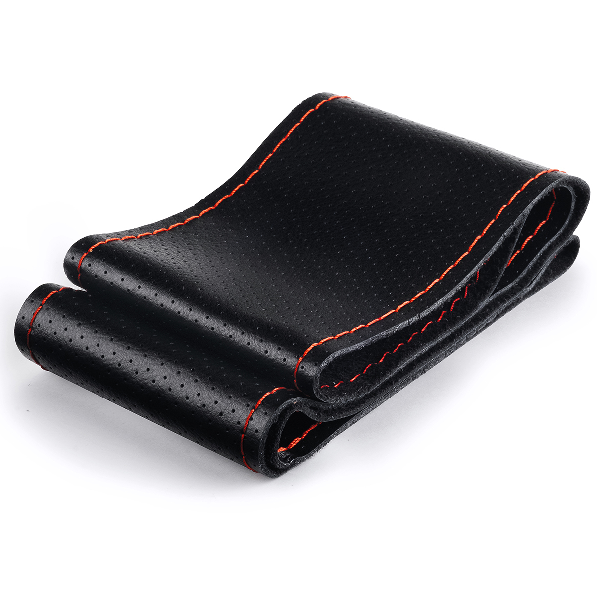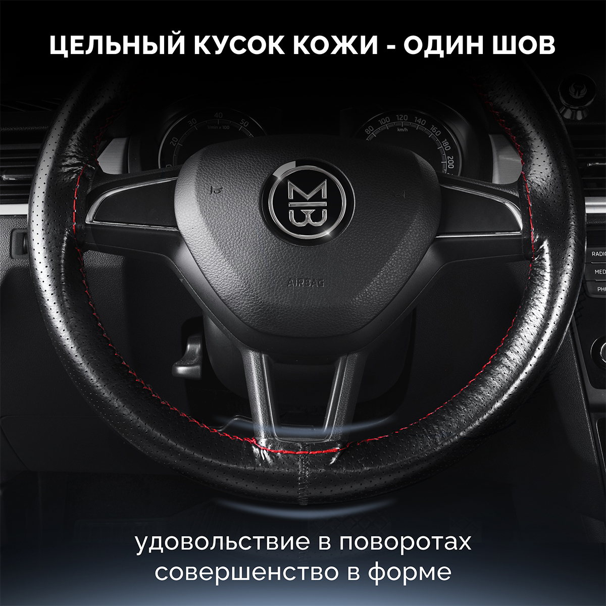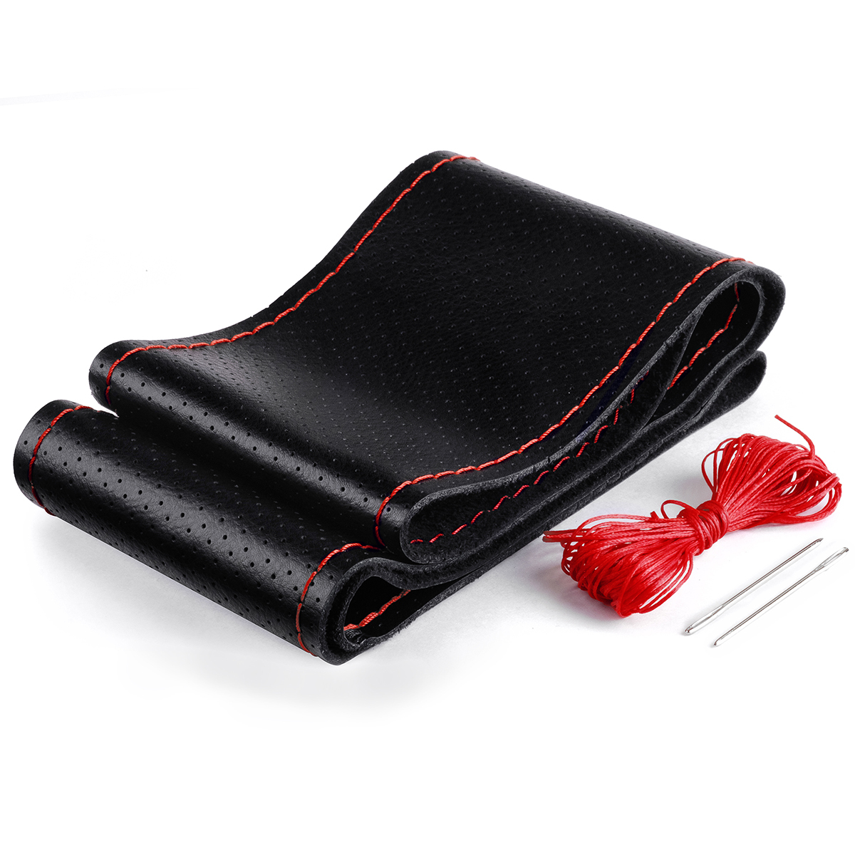 Оплетка на руль на шнуровке с перфорацией натуральная кожа черная с красной нитью