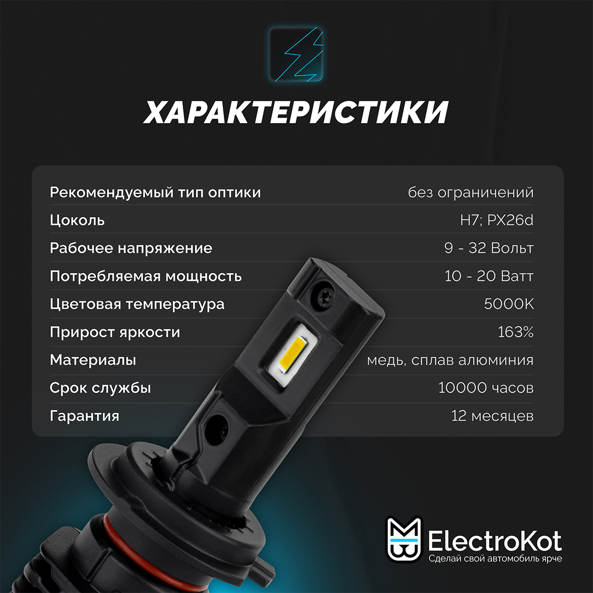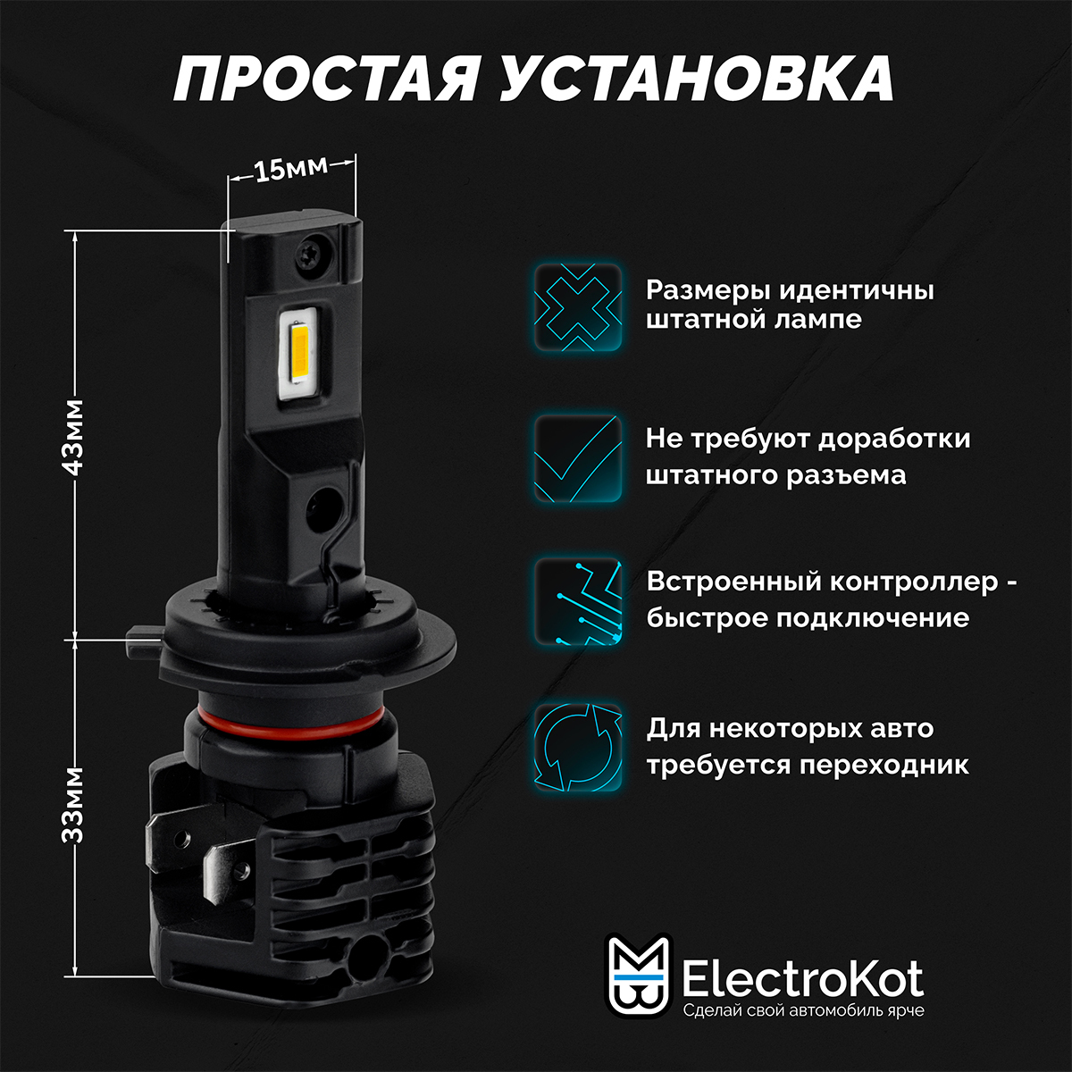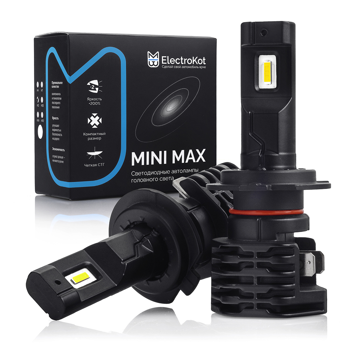 Светодиодные лампы для авто ElectroKot MiniMax H7 белый свет 5000K 2 шт, в ближний/дальний