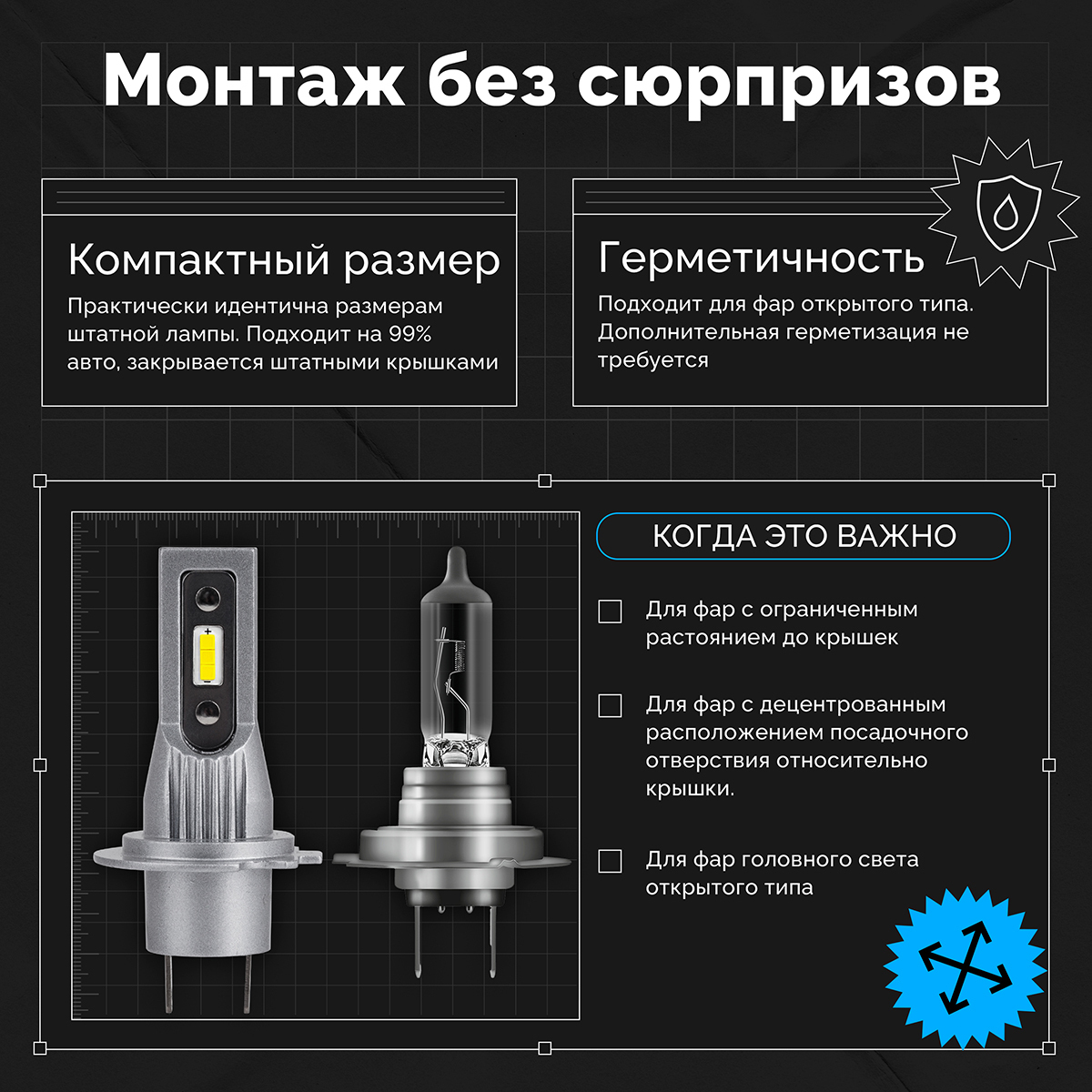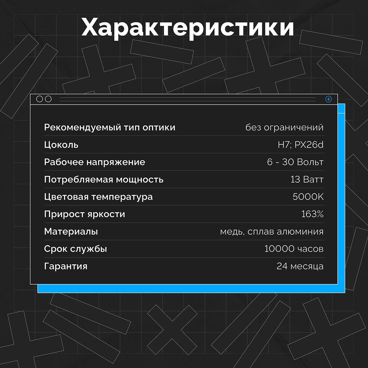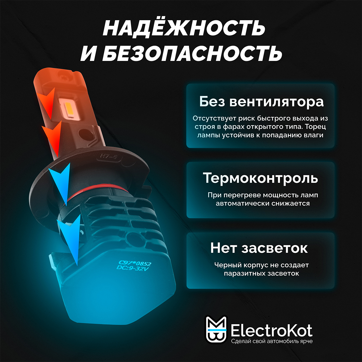 Светодиодные лампы для авто ElectroKot MiniMax H7 белый свет 5000K 2 шт, в ближний/дальний