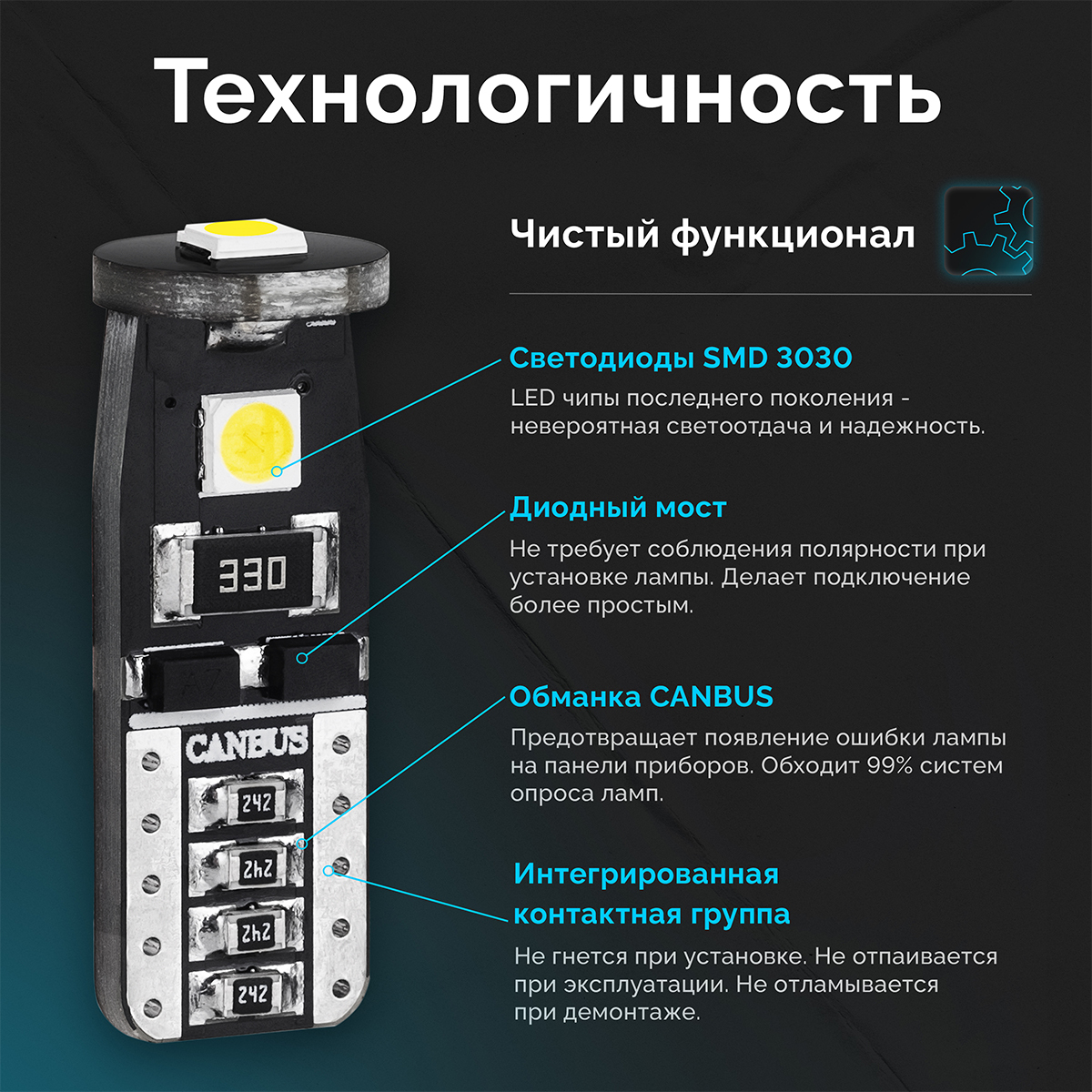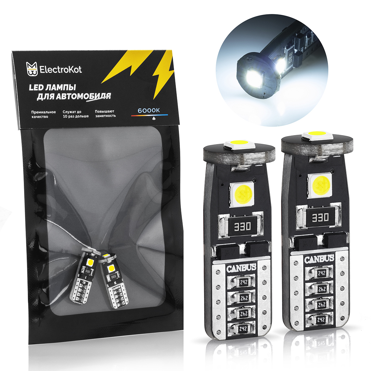 Светодиодная лампа ElectroKot MiniMax T10 W5W canbus 5000K чистый белый свет 2 шт, в габаритные огни