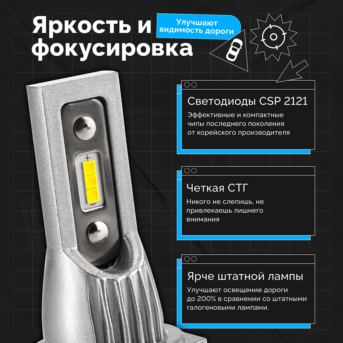 Светодиодные лампы для авто ElectroKot MiniMax H11 (H8, H9, H16jp) желтый свет 3000K 2 шт