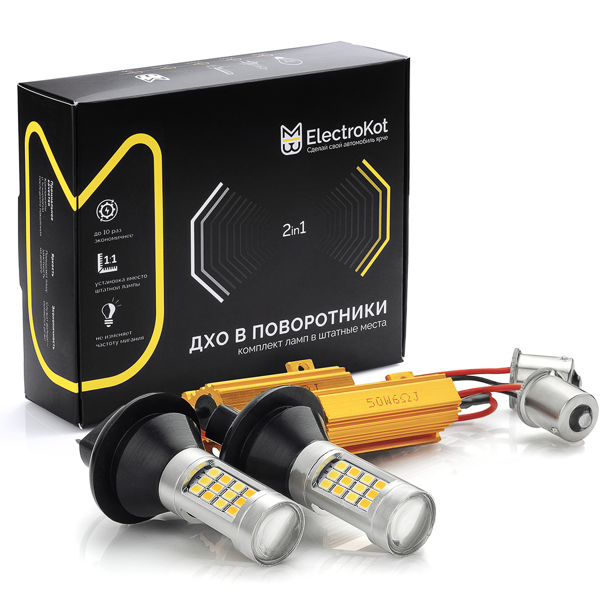 Светодиодные лампы ДХО в поворотники 2 в 1 ElectroKot LED-42 BAU15S комплект 2 шт