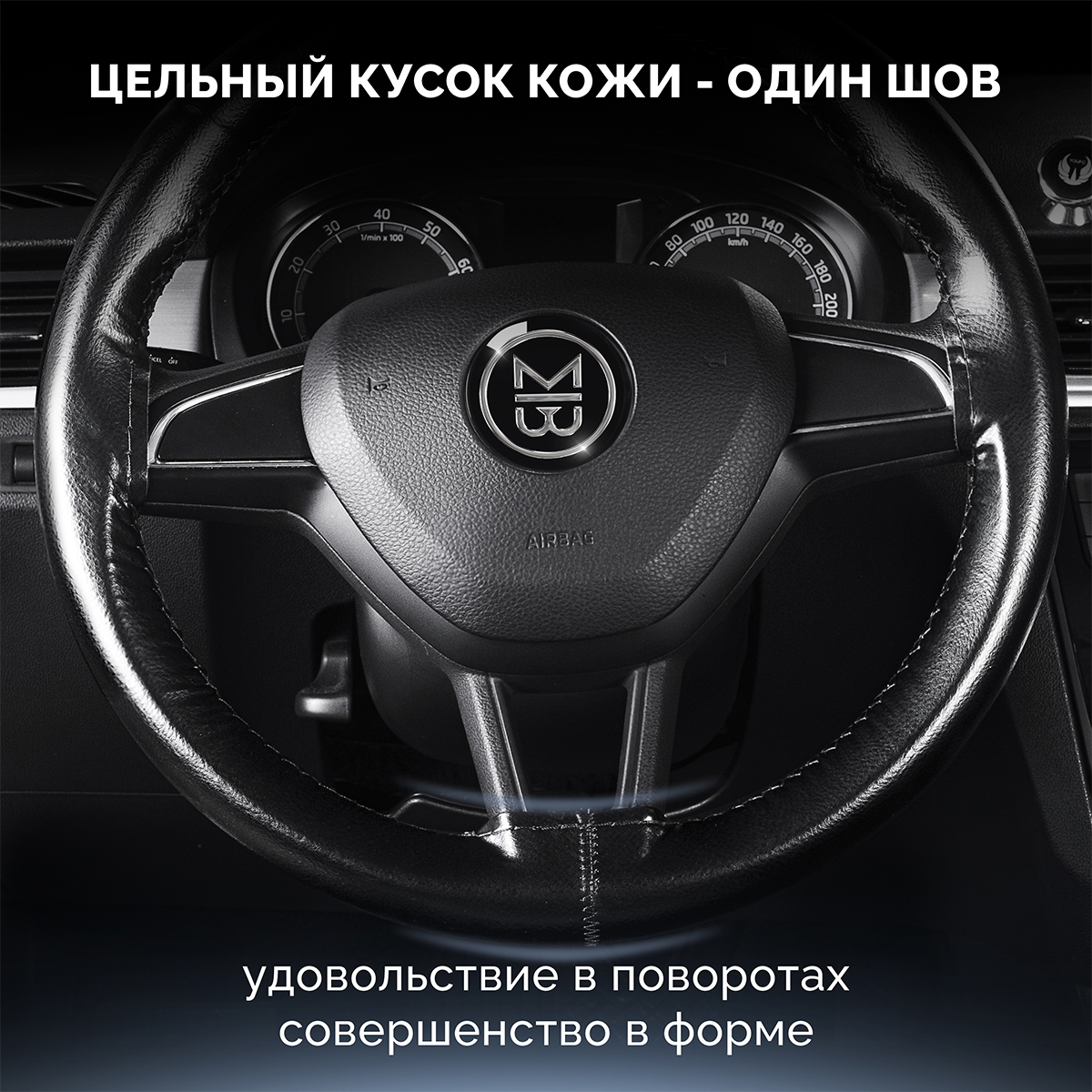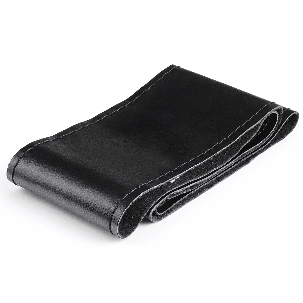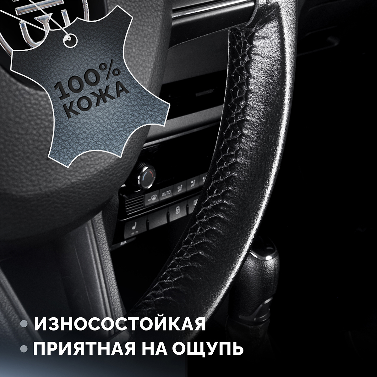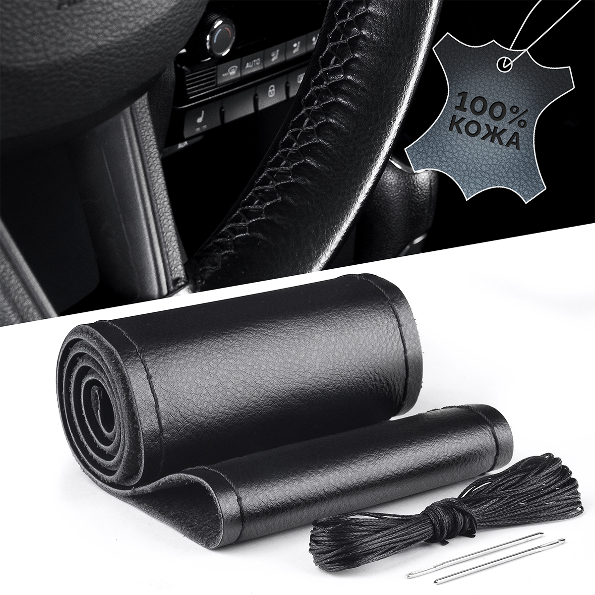 Оплетка на руль со шнуровкой из натуральной гладкой кожи черная с черной нитью