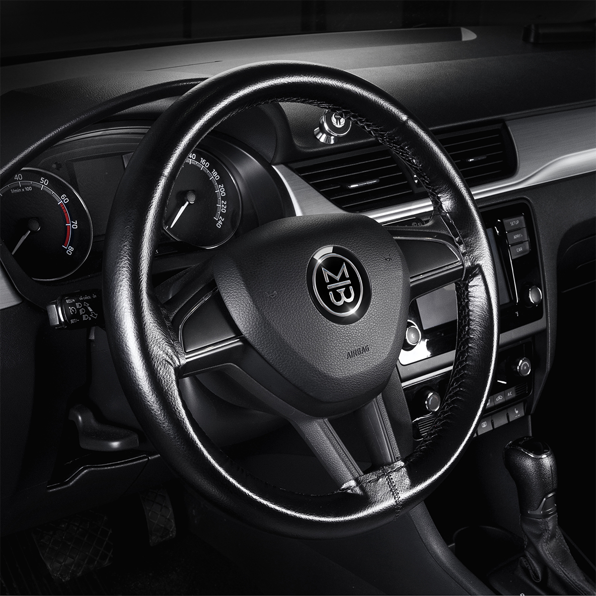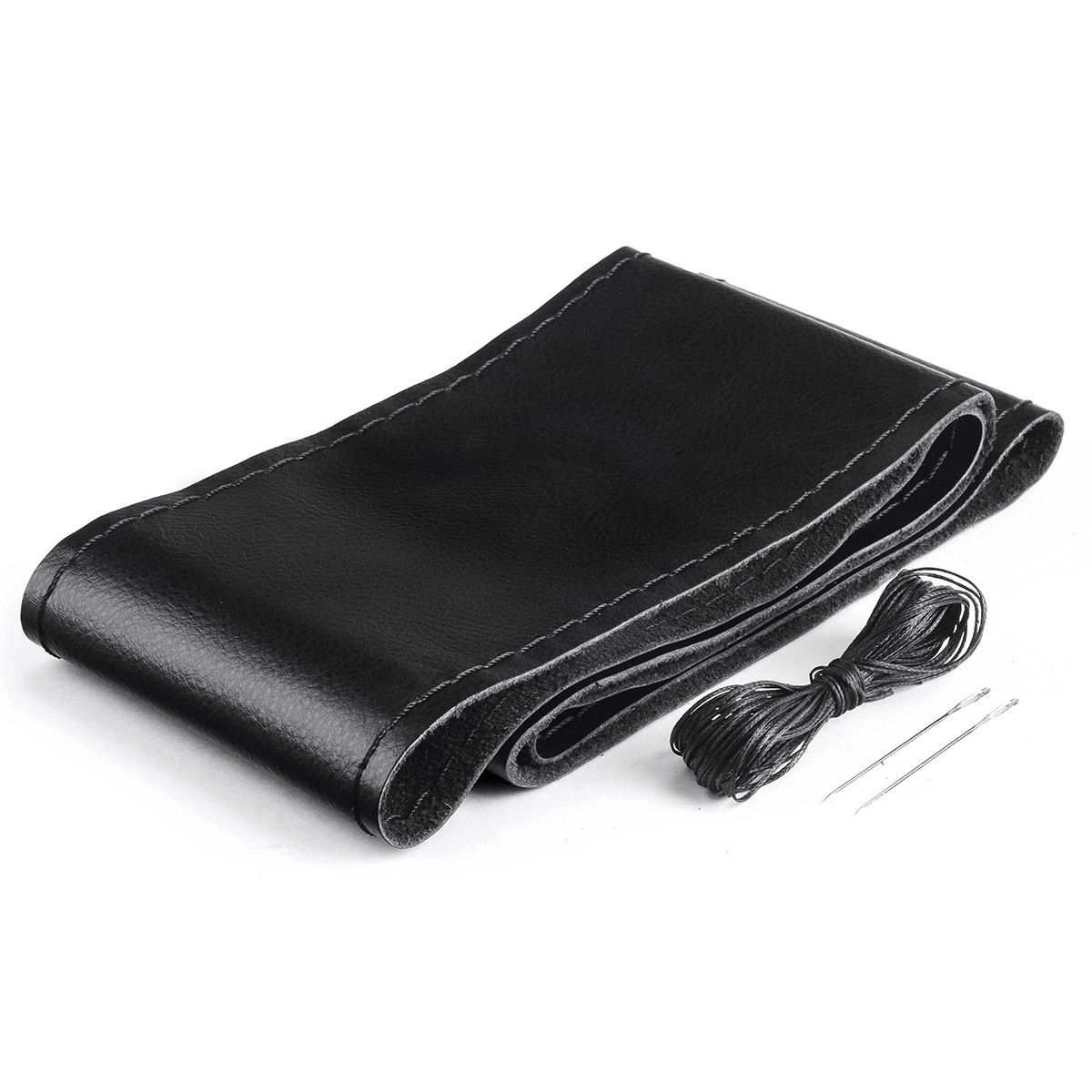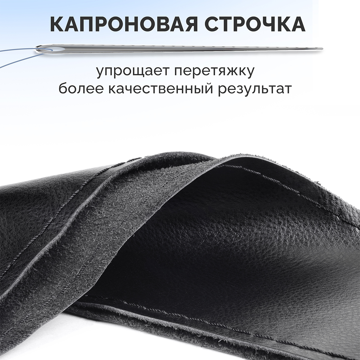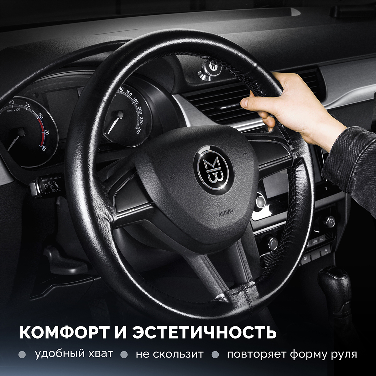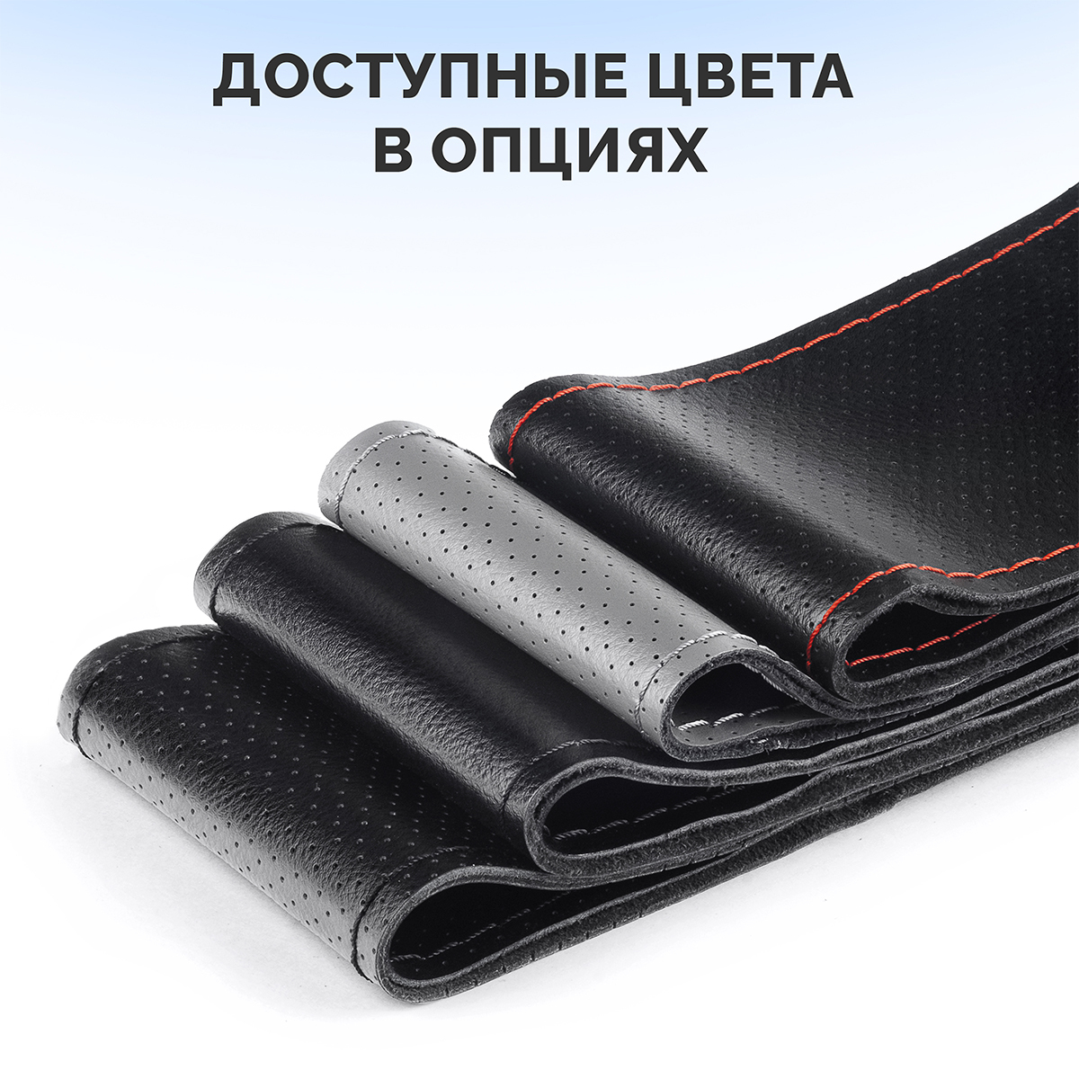 Оплетка на руль со шнуровкой из натуральной гладкой кожи черная с черной нитью