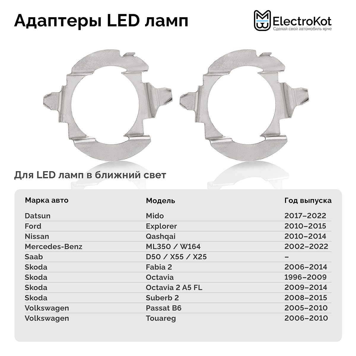 Переходник-адаптер для установки светодиодных ламп H7 в Skoda, Volkswagen, Nissan, Datsun, 2 шт