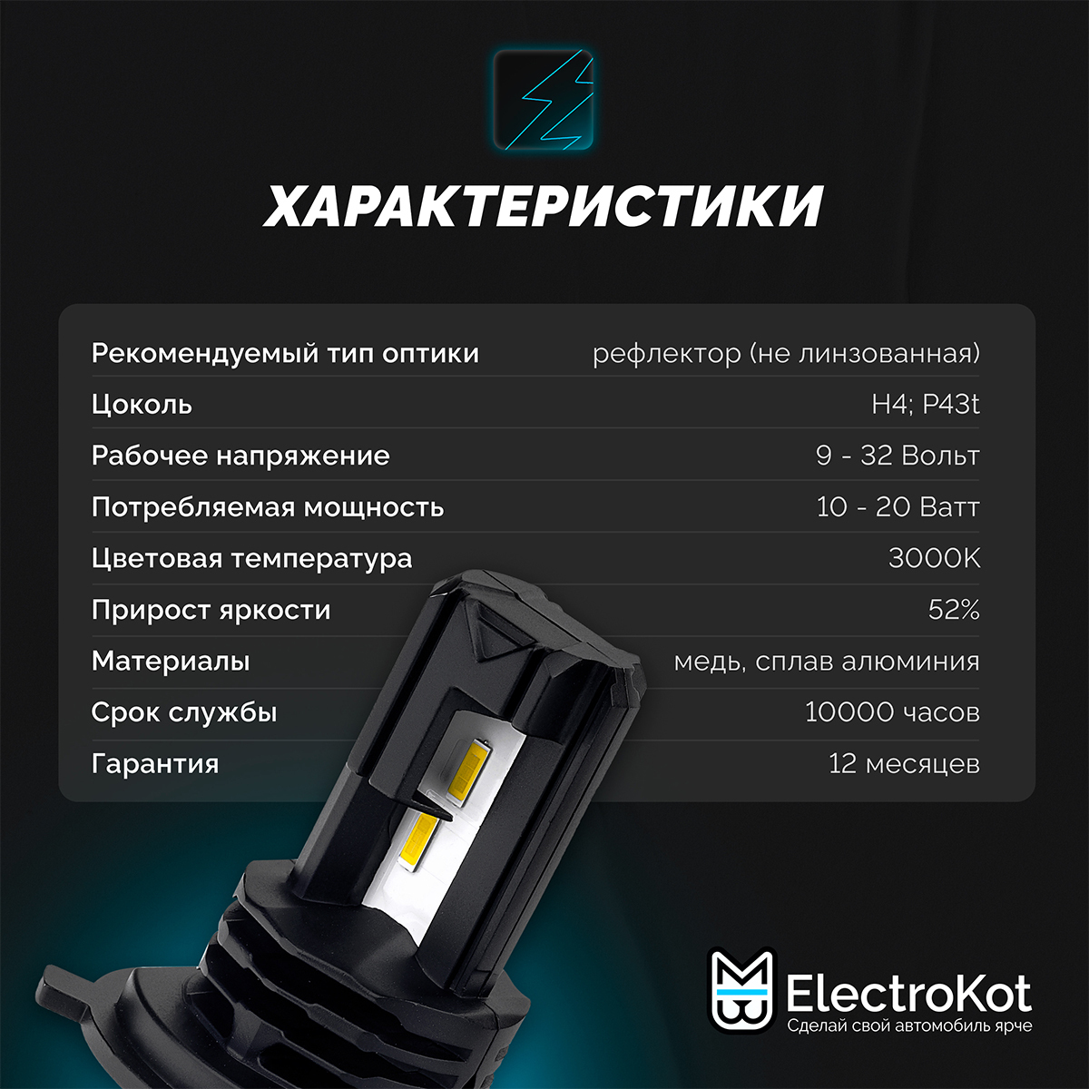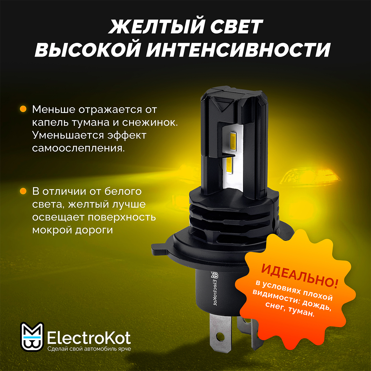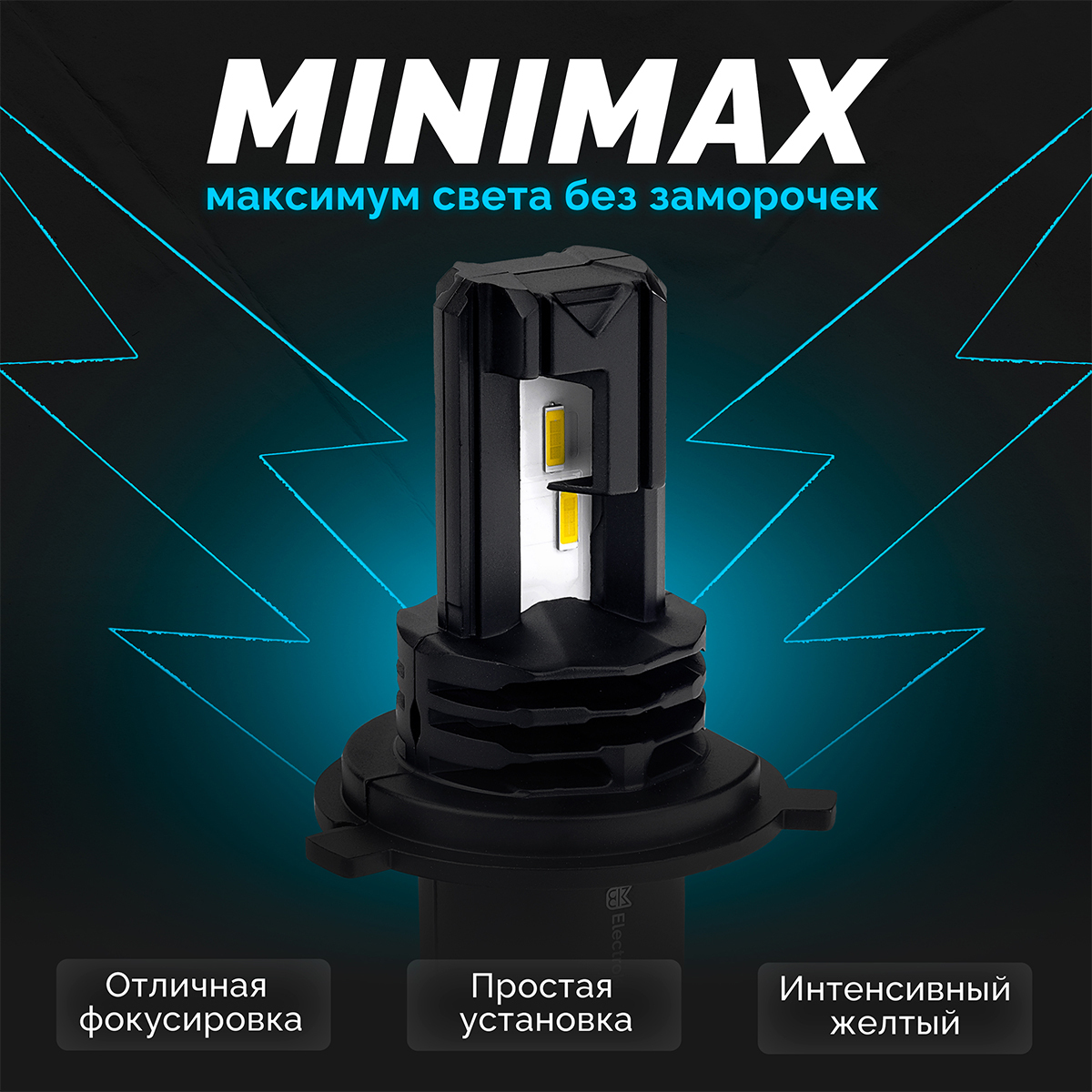 Светодиодные лампы для авто ElectroKot MiniMax H4 желтый свет 3000K 2 шт, в ближний/дальний