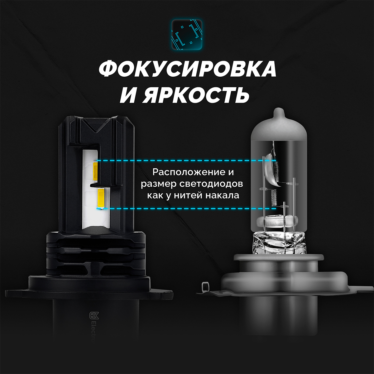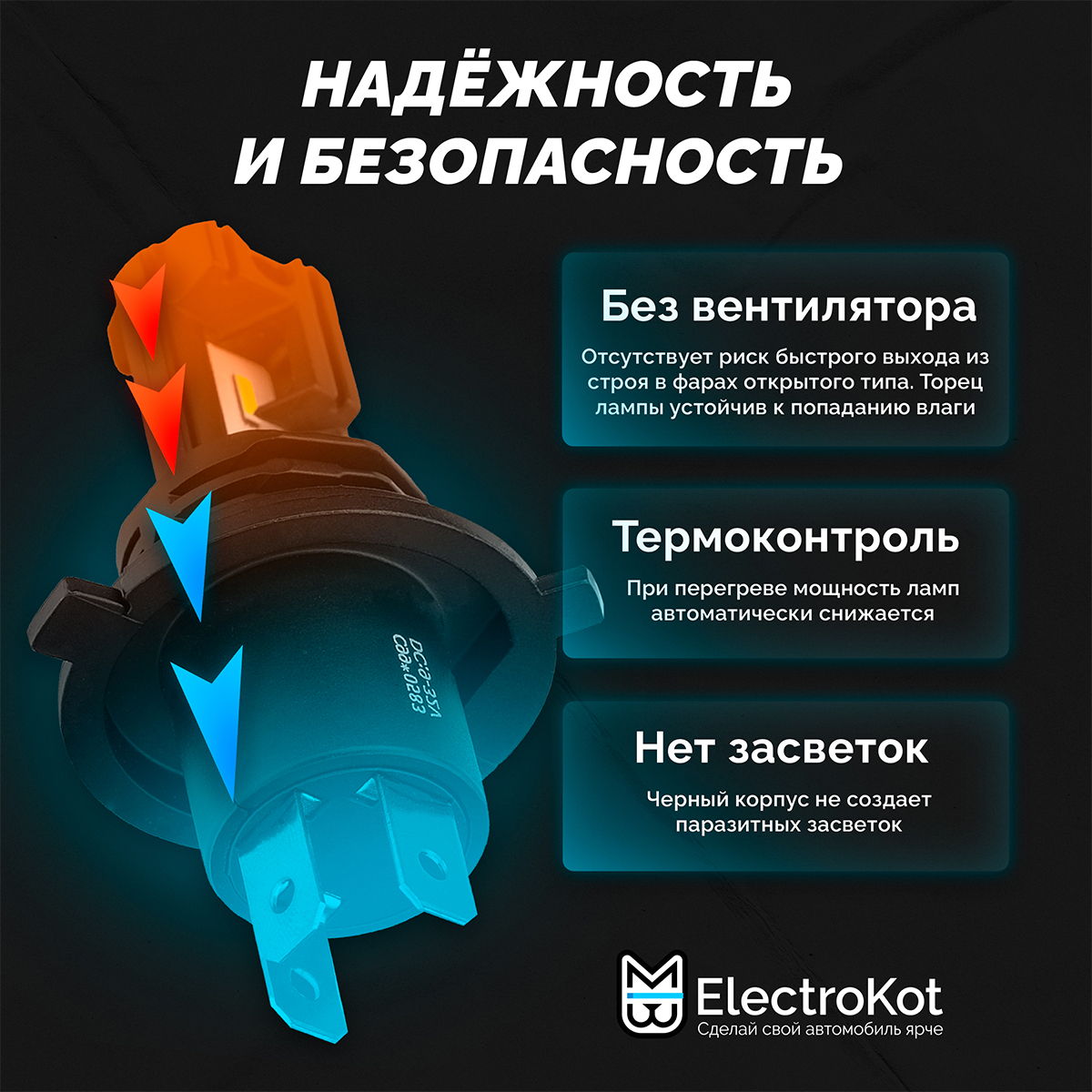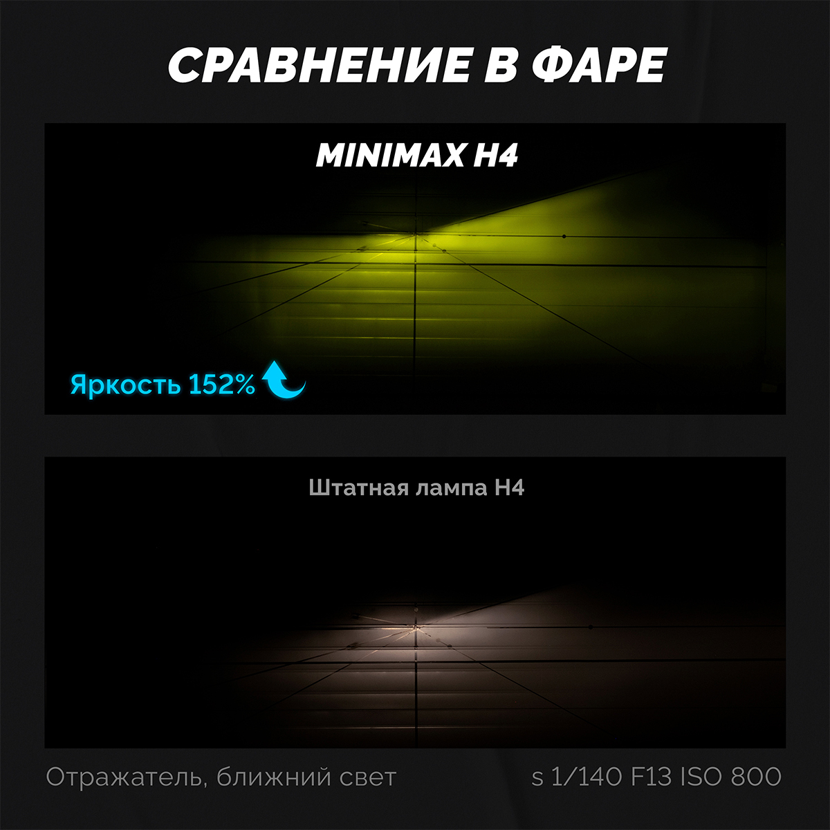 Светодиодные лампы для авто ElectroKot MiniMax H4 желтый свет 3000K 2 шт, в ближний/дальний