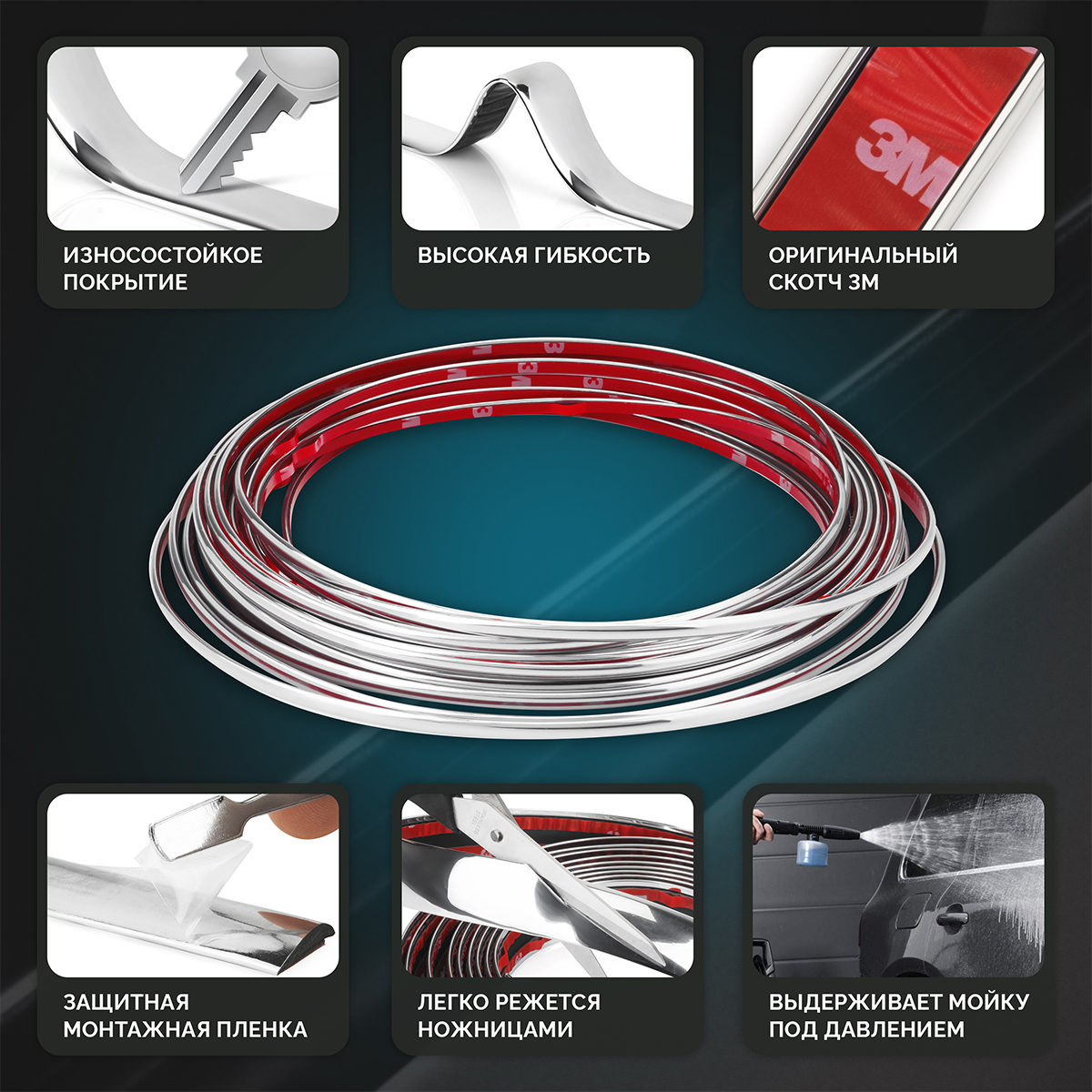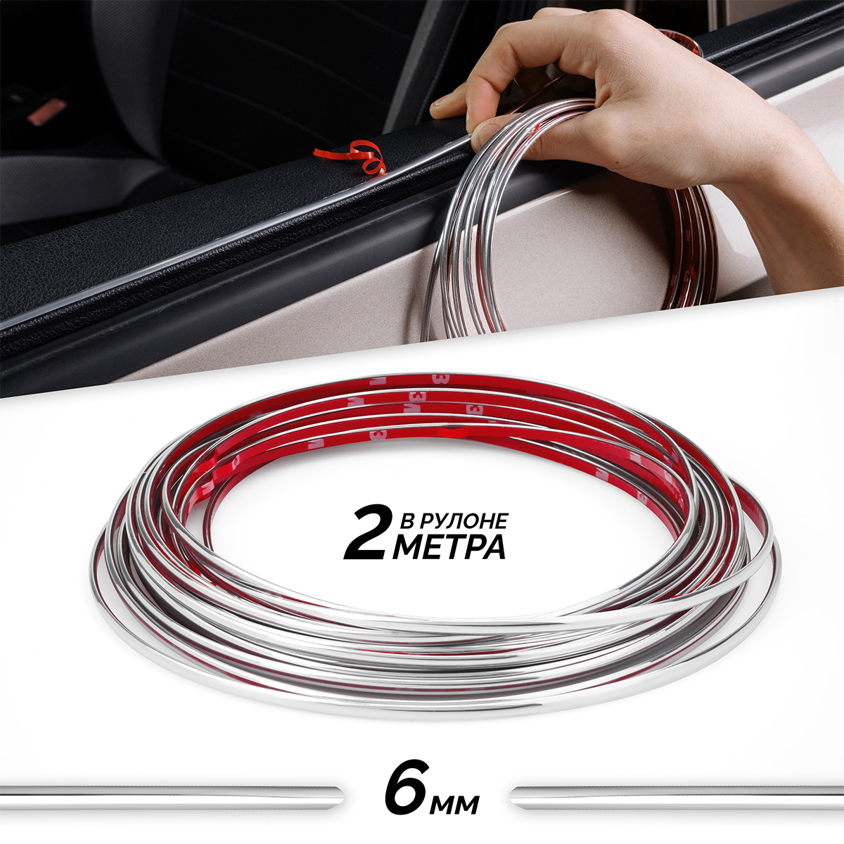 Молдинг хром лента ElectroKot на авто универсальная для решетки, в салон ширина 6 мм 2 метра