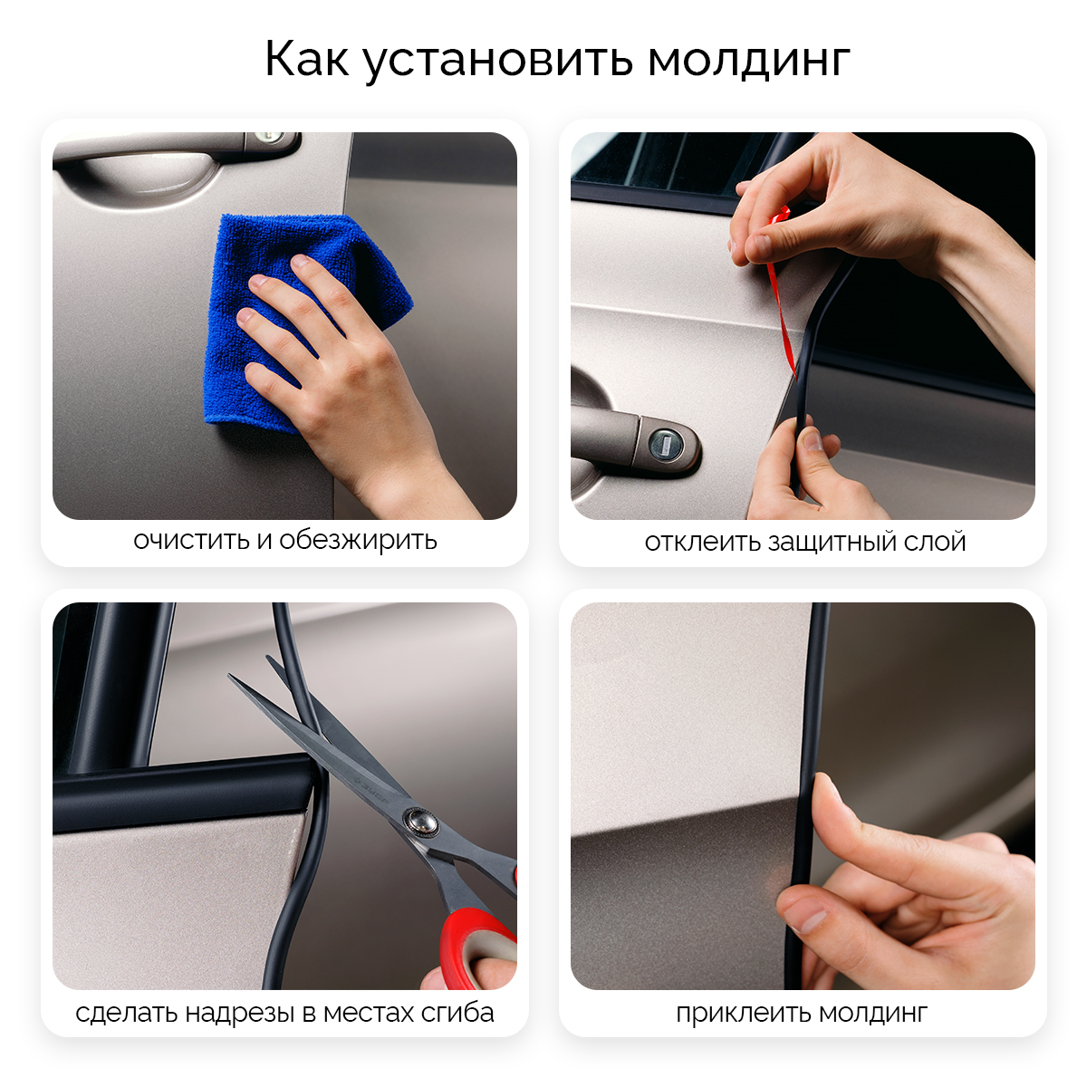 Молдинг для защиты кромки дверей авто самоклеящийся 8 метров на 4 двери белый