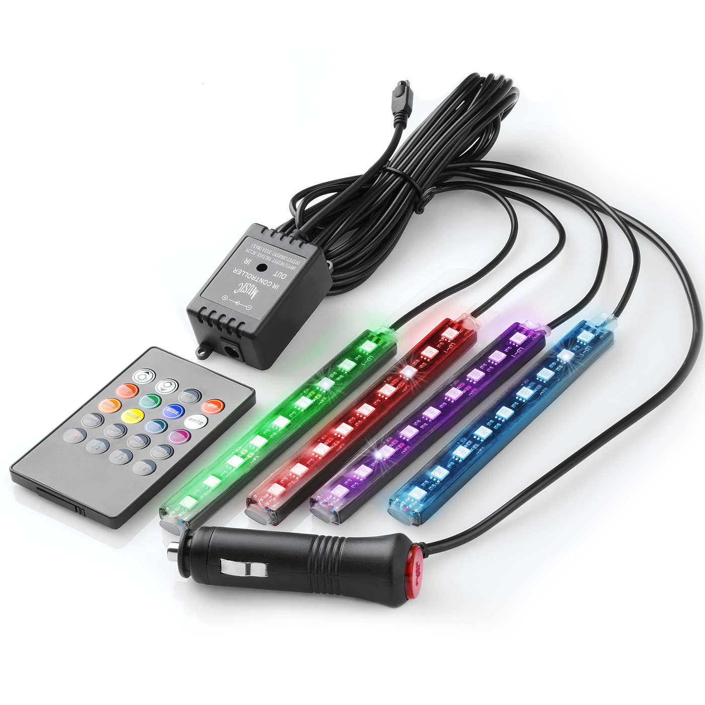 Подсветка салона авто со звуковым контроллером ElectroKot 4 модуля 36 LED ИК-пульт RGB многоцветная