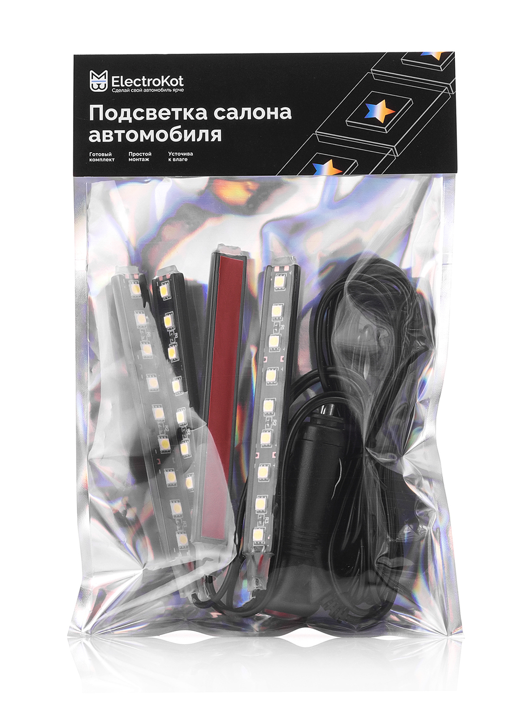 Светодиодная подсветка салона и зоны ног автомобиля ElectroKot 4 модуля 36 LED голубая