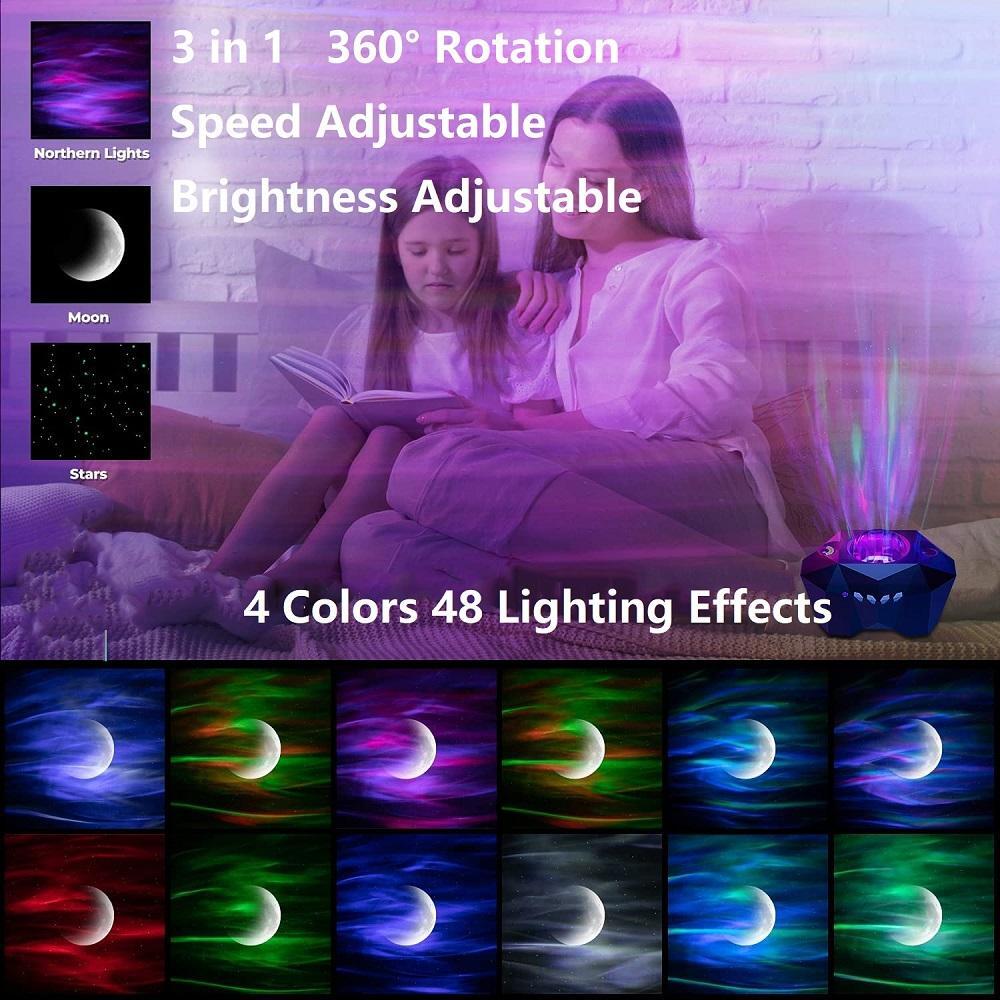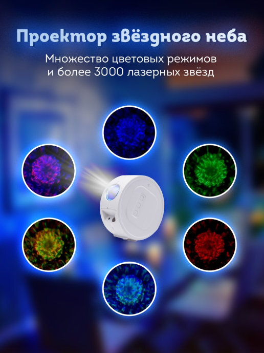 Ночник проектор звездного неба, 15 световых режимов. Ночник детский для сна, светомузыка. Светильник светодиодный лазерный детский ночник.