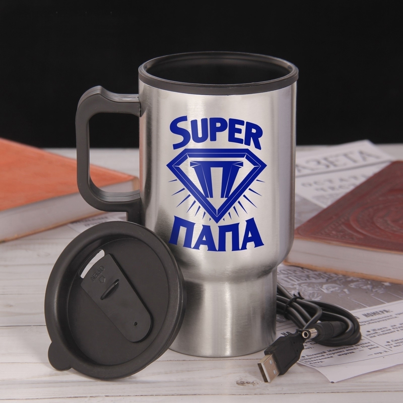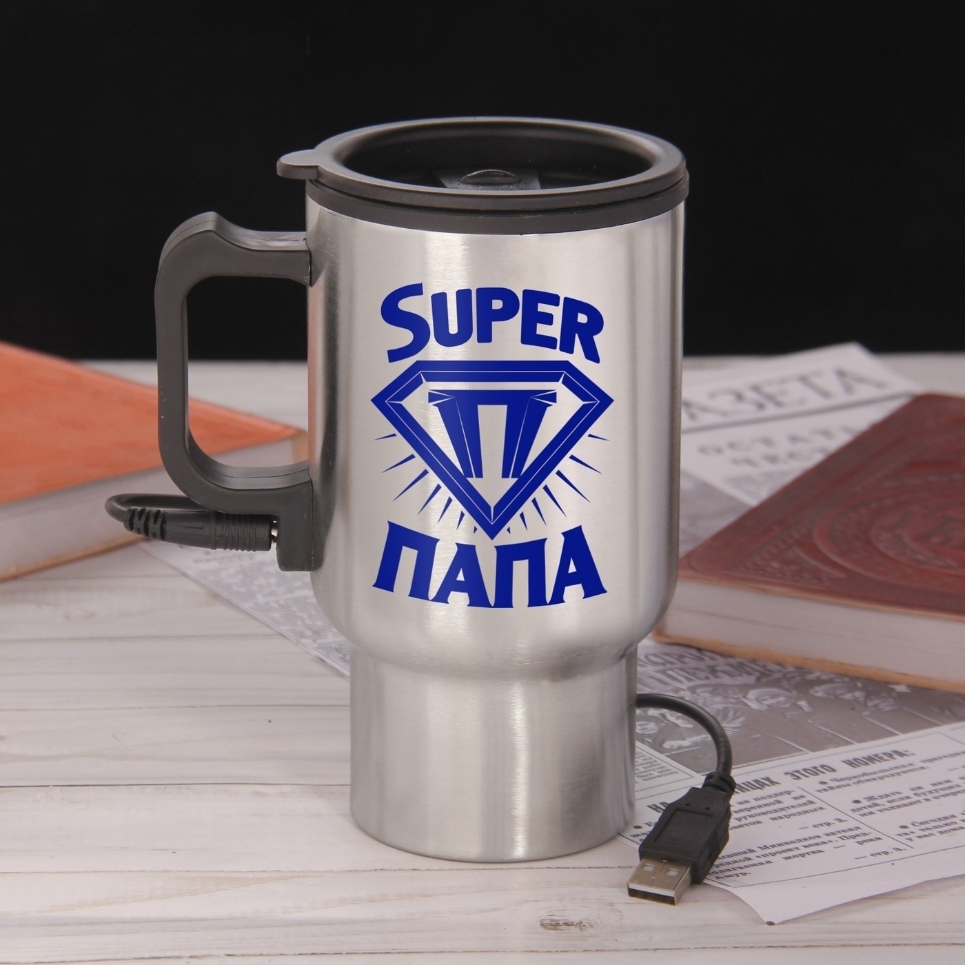 Термокружка "Супер-папа" с крышкой, с подогревом USB, 450 мл