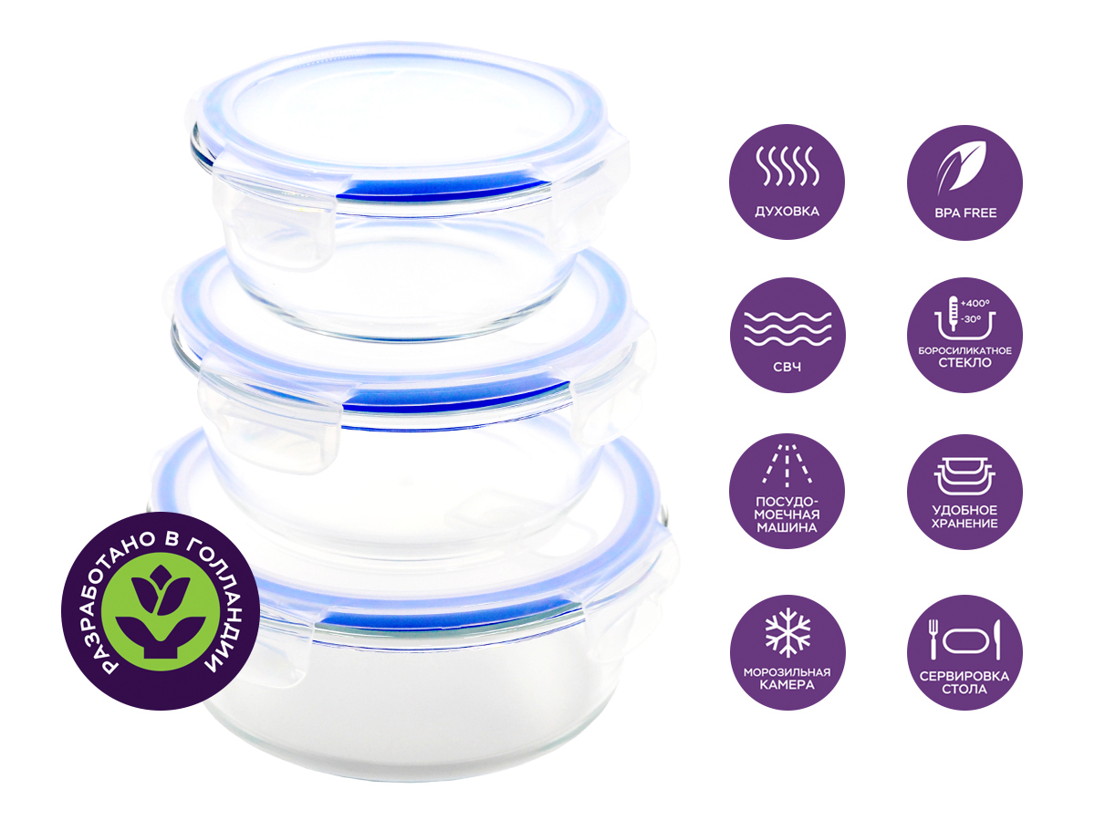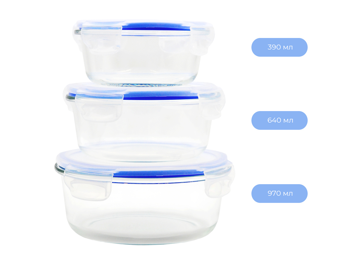 Контейнер вакуумный для пищи Eley, 390 мл, 640 мл, 970 мл, 3 шт