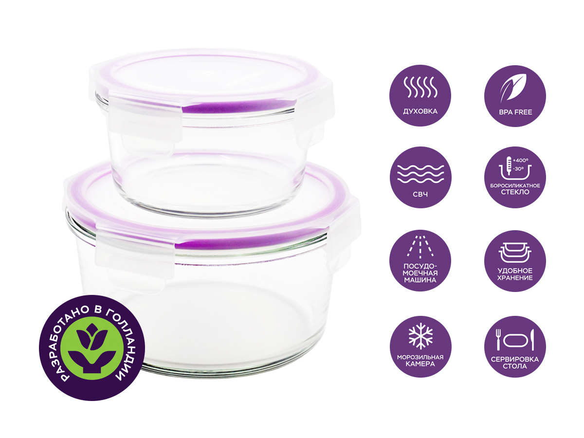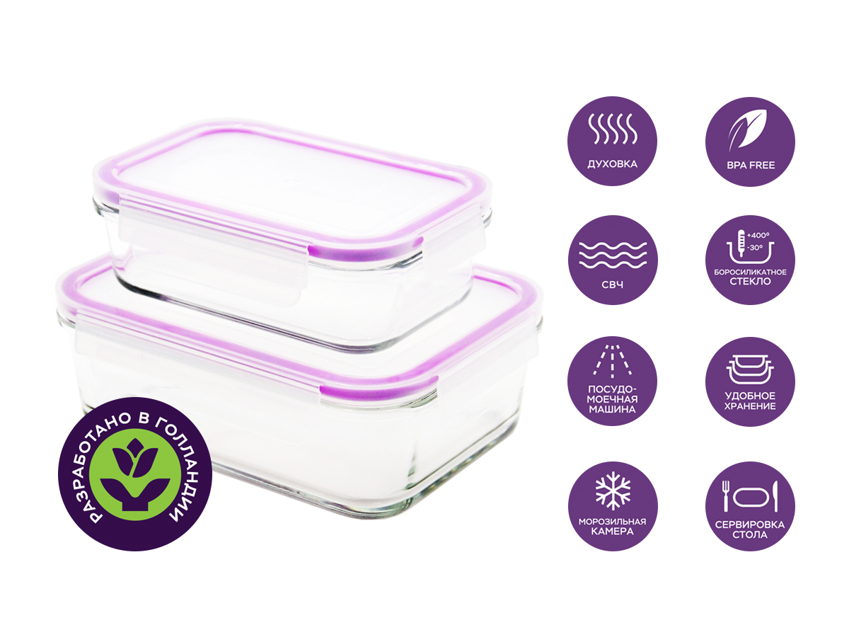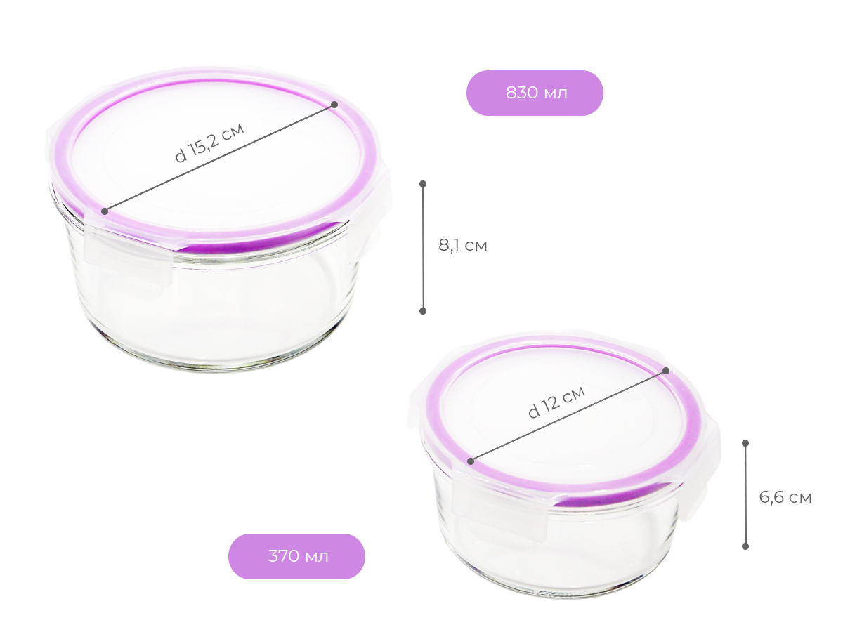 Набор стеклянных пищевых контейнеров Eley 370 мл и 830 мл ELSTH010P
