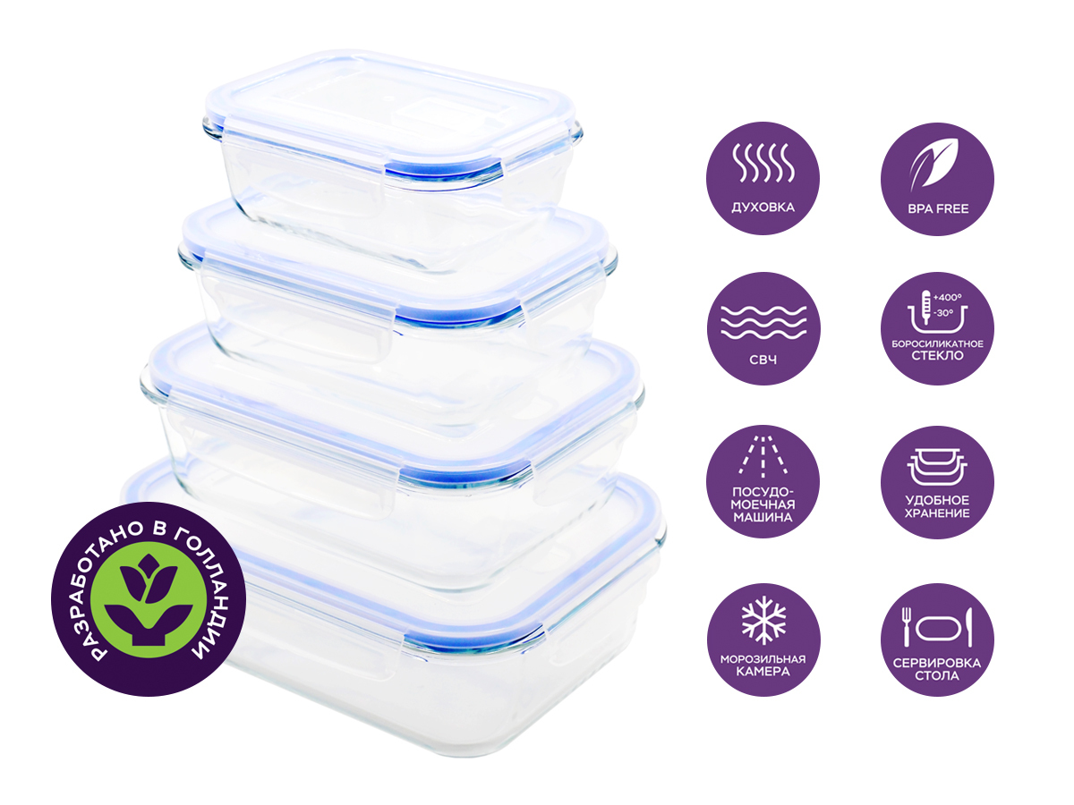 Контейнер пищевой Eley, 370 мл, 630 мл, 1040 мл, 1500 мл, 4 шт