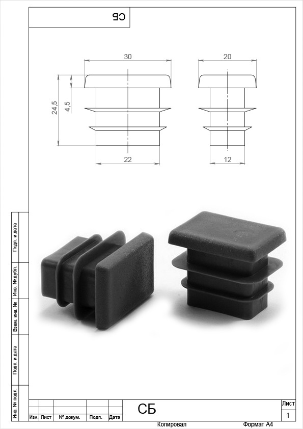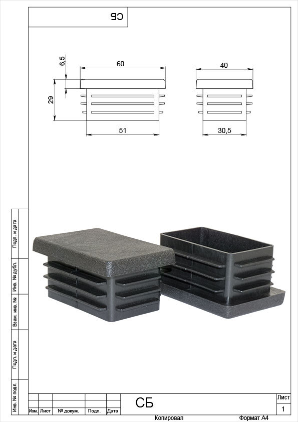 Заглушка 60х40 мм, для профильной трубы, 10 шт