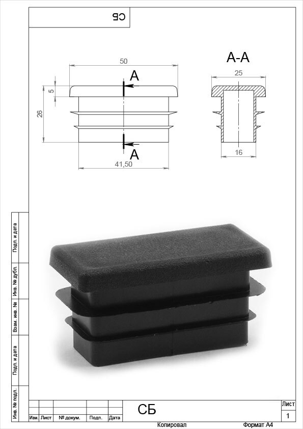 Заглушка 50х25 мм, для профильной трубы, 10 шт