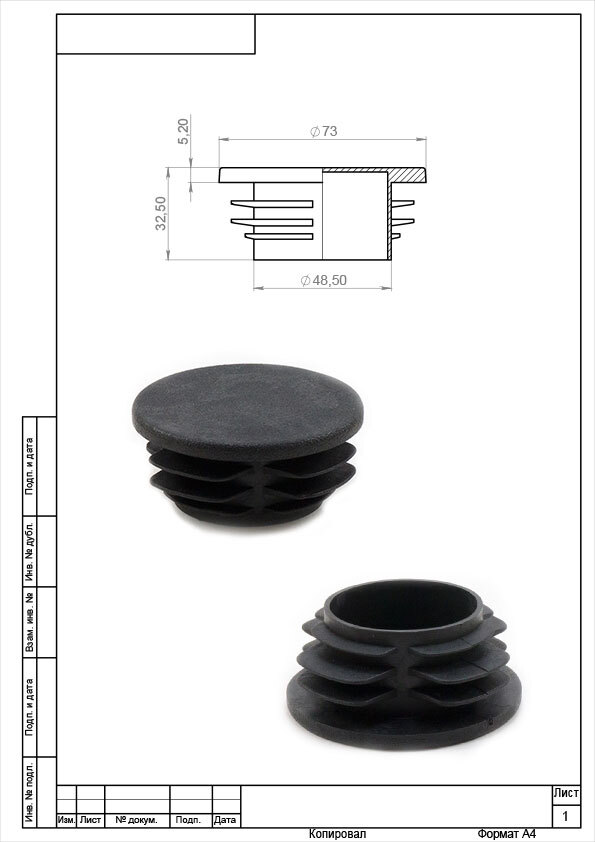 Заглушка д.73 мм, для профильной трубы, 10 шт
