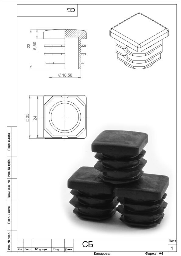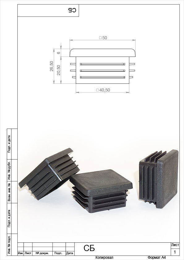 Заглушка д.40 мм, для профильной трубы, 10 шт