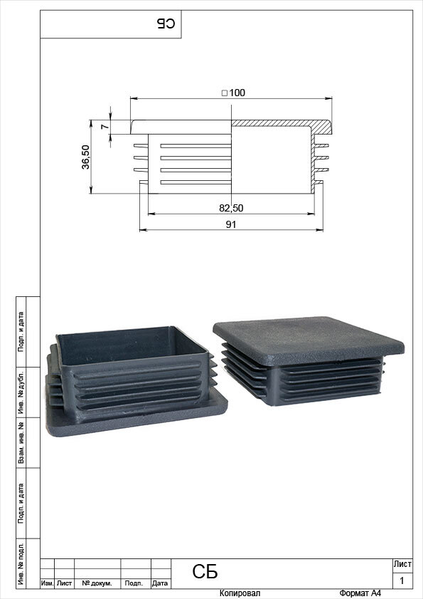 Заглушка 100х100 мм, для профильной трубы, 10 шт