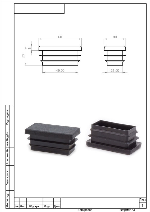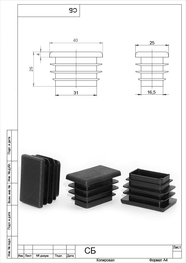 Заглушка 40х25 мм, для профильной трубы, 10 шт