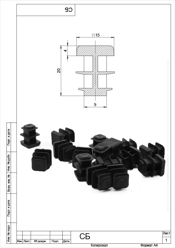 Заглушка 15x15 мм, для профильной трубы, 10 шт