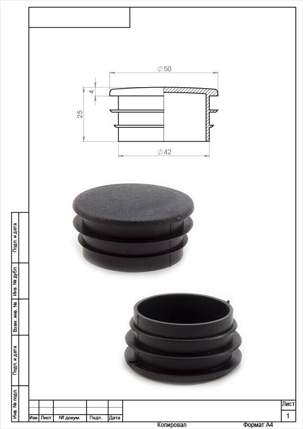Заглушка д.50 мм, для профильной трубы, 10 шт