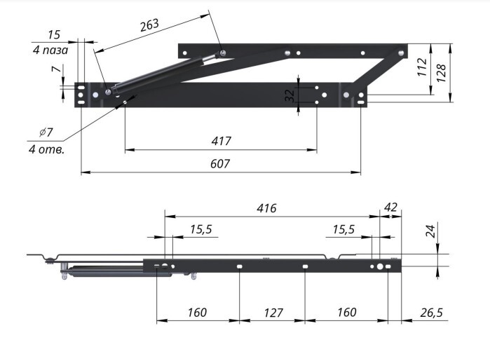 Механизм подъема кровати МПК 500, газлифты 1000N