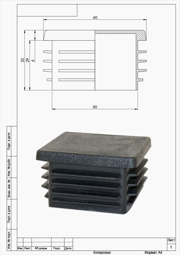 Заглушка 60х60 мм, для профильной трубы, 10 шт
