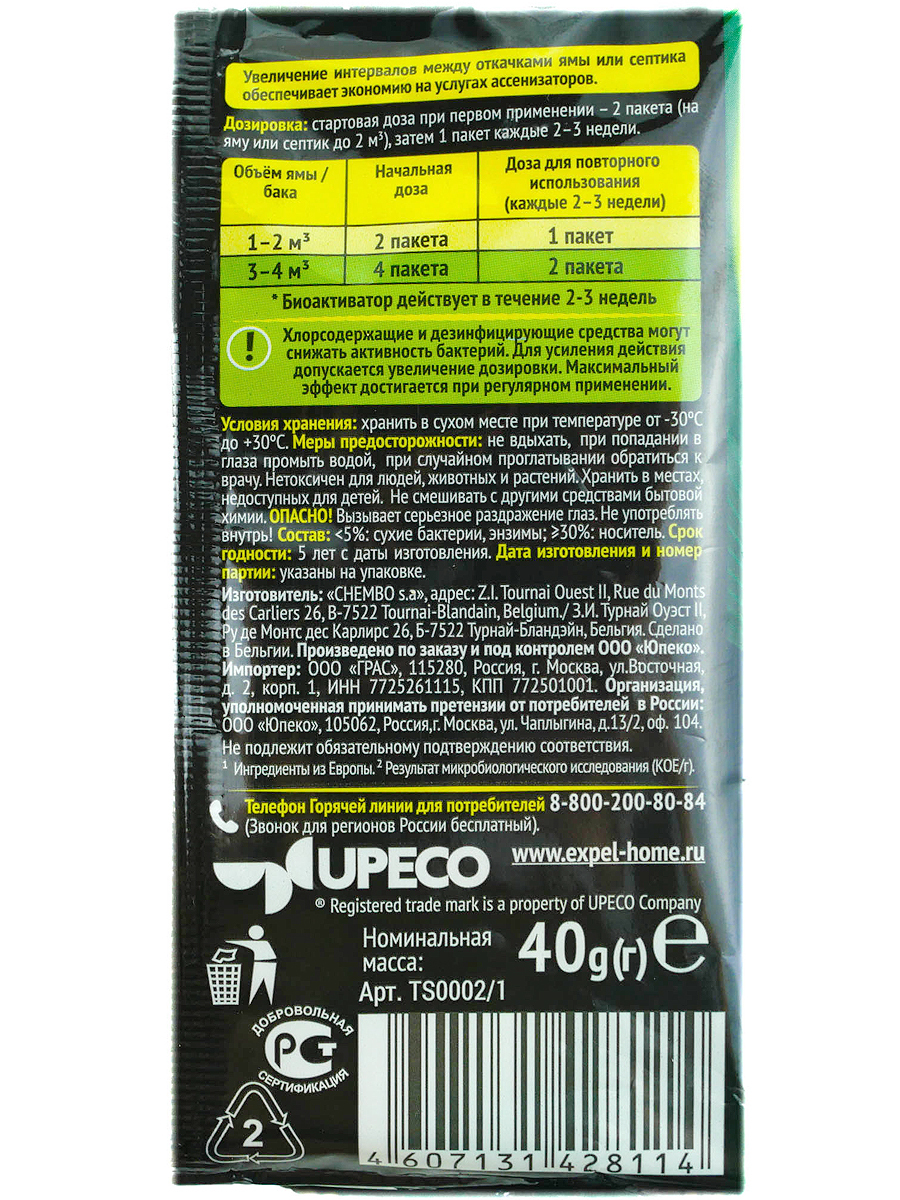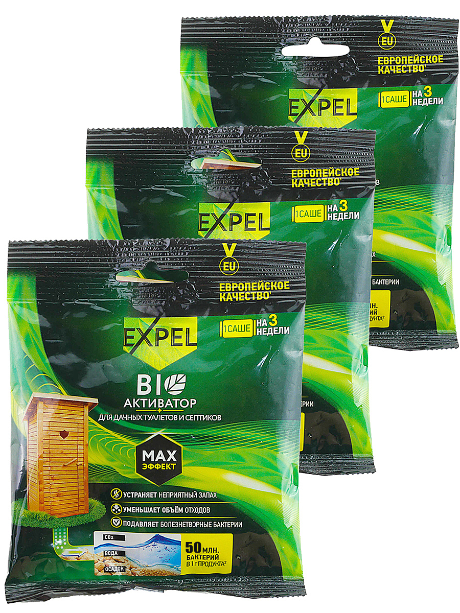 Средства для выгребных ям и септиков биоактиватор Expel, 3 пакетика по 40 г.