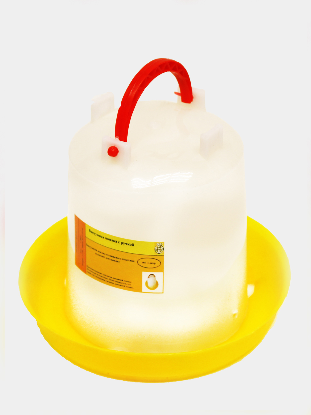 Вакуумная поилка с ручкой для птиц 1 литр. Цвет "Бело-жёлтый". Размеры 17х17,5 см. Пластиковая.
