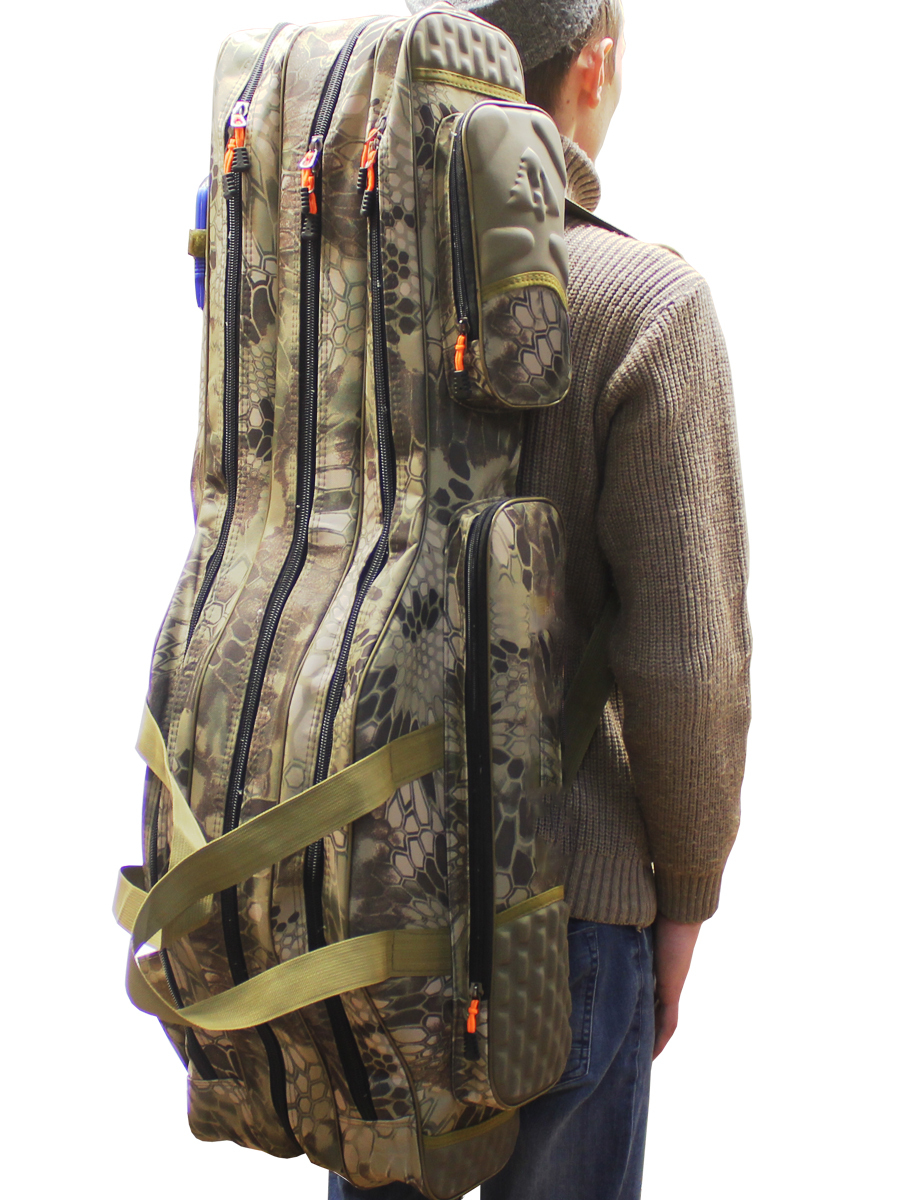 Чехол для снастей, удочек, с 3 отделениями и 2 боковыми карманами, 100 см. с жестким выступом.