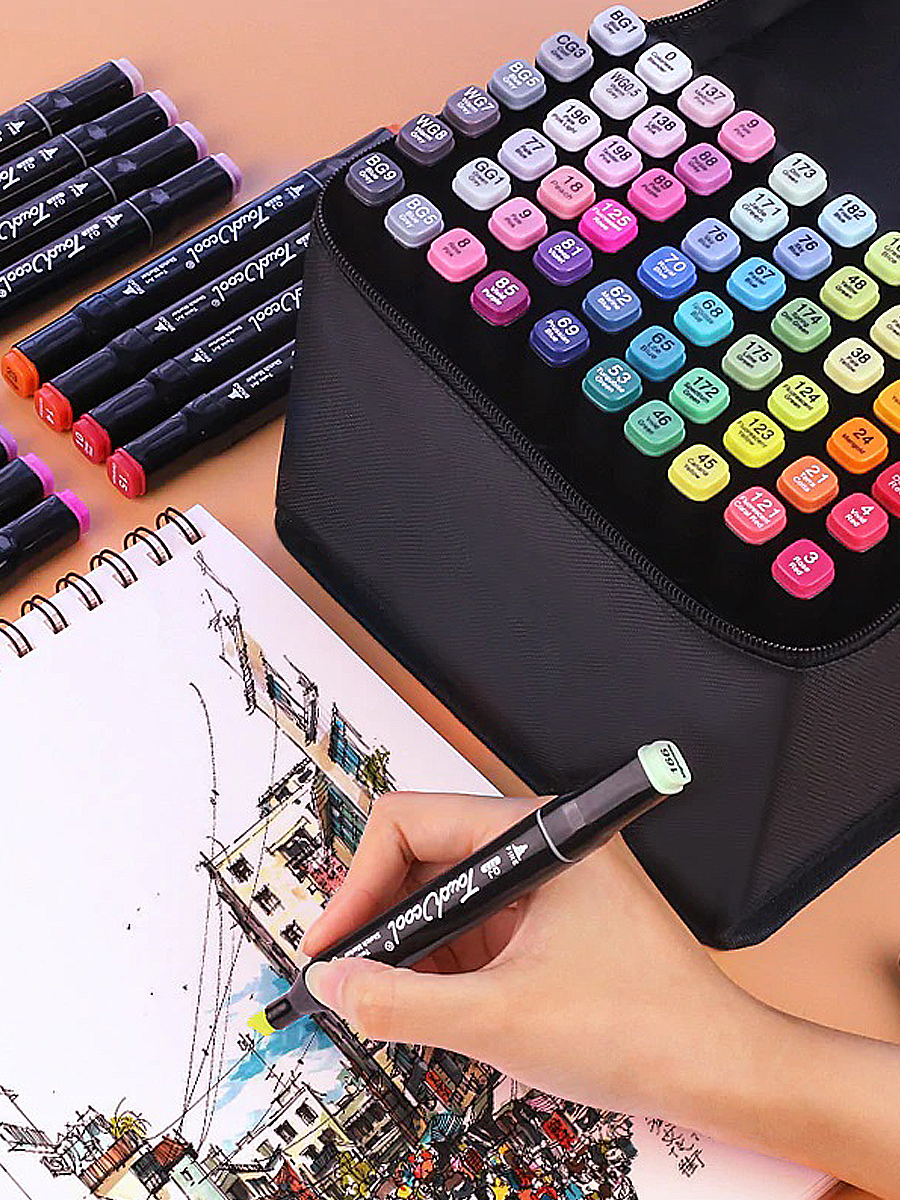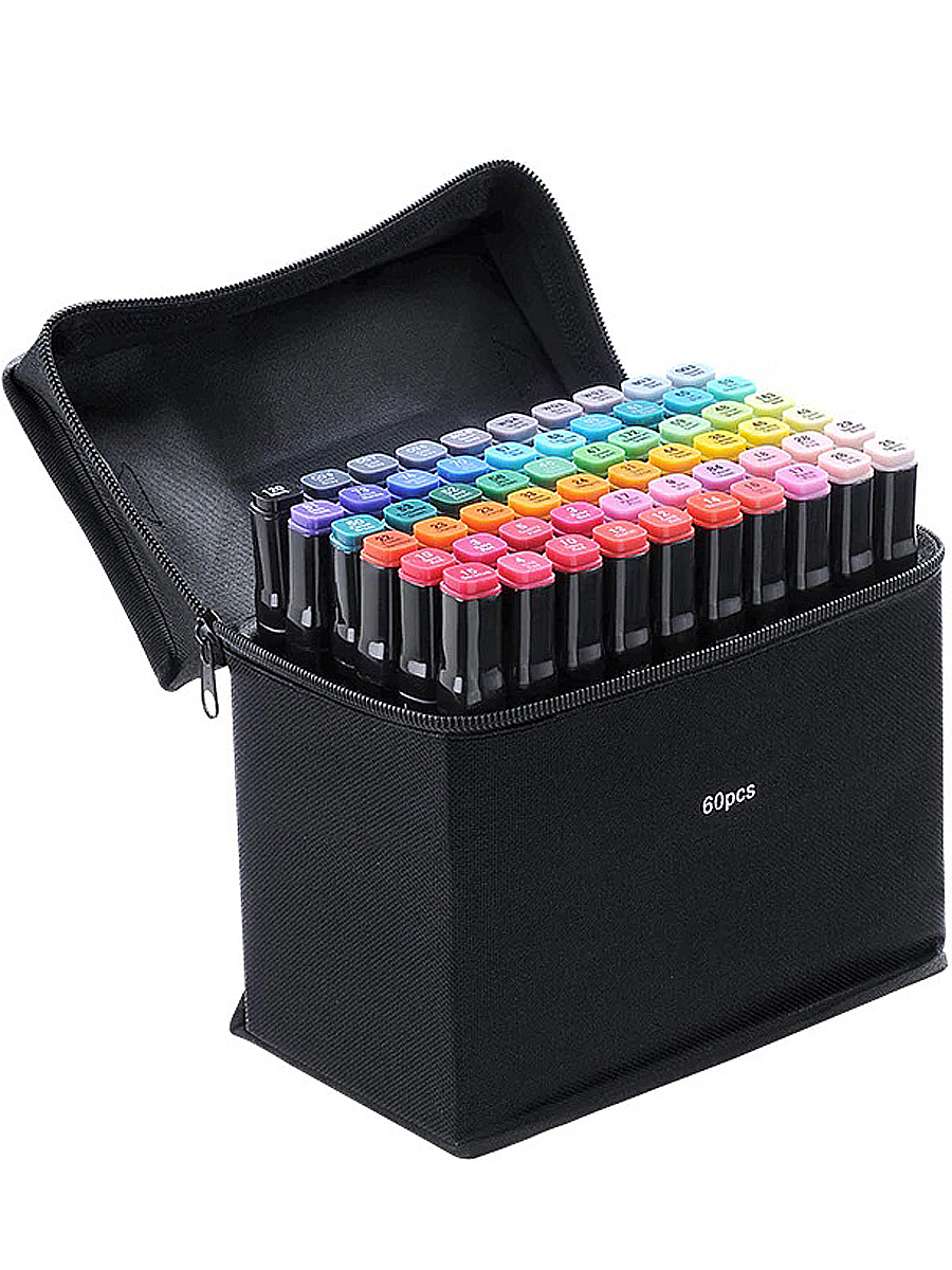 Набор профессиональных двухсторонних маркеров для скетчинга 60 цветов, в чехле