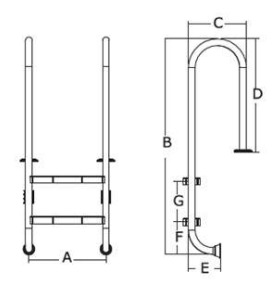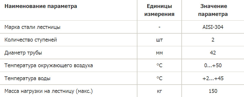 Лестница 2 ступени (у.б.) Emaux NMU215-S AISI-304