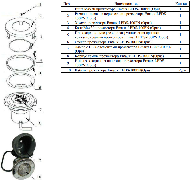 Прожектор из пластика (15Вт/12В) с LED- элементами Emaux LEDS-100PN