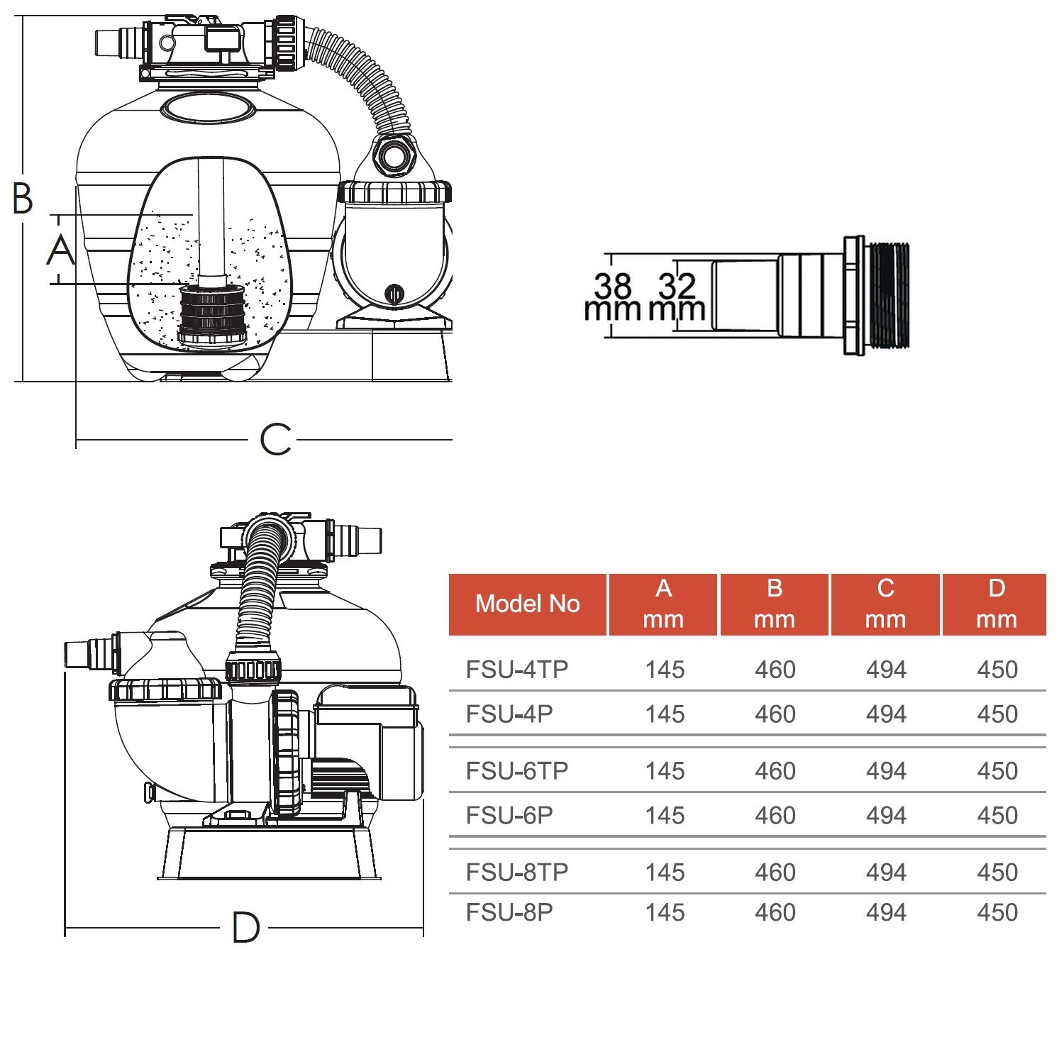 Фильтровальная установка (400мм) (верх. подсоед.) Emaux FSP400-4W (Opus)