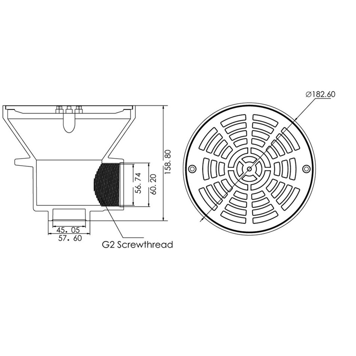 Донный слив для бассейна Emaux EM2838 (d183 мм, h159 мм, под плитку)