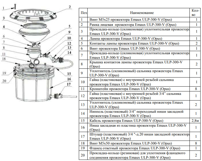 Прожектор (300Вт/12В) (плитка) Emaux UL-P300