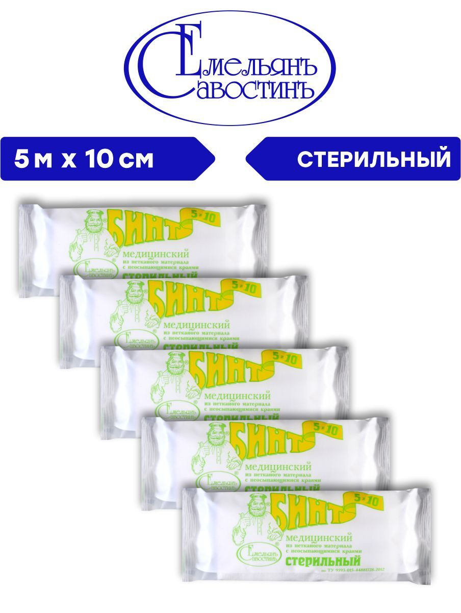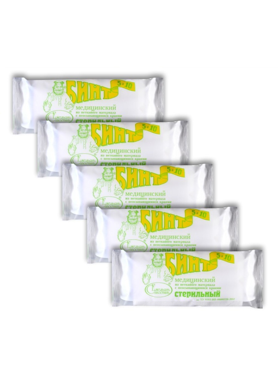 Бинт медицинский из нетканого материала с неосыпающимися краями 5мх10см в инд. уп. х 5 шт