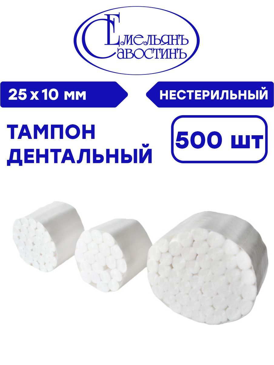 Тампон дентальный медицинский нестерильный 25х10 мм. 500 шт.
