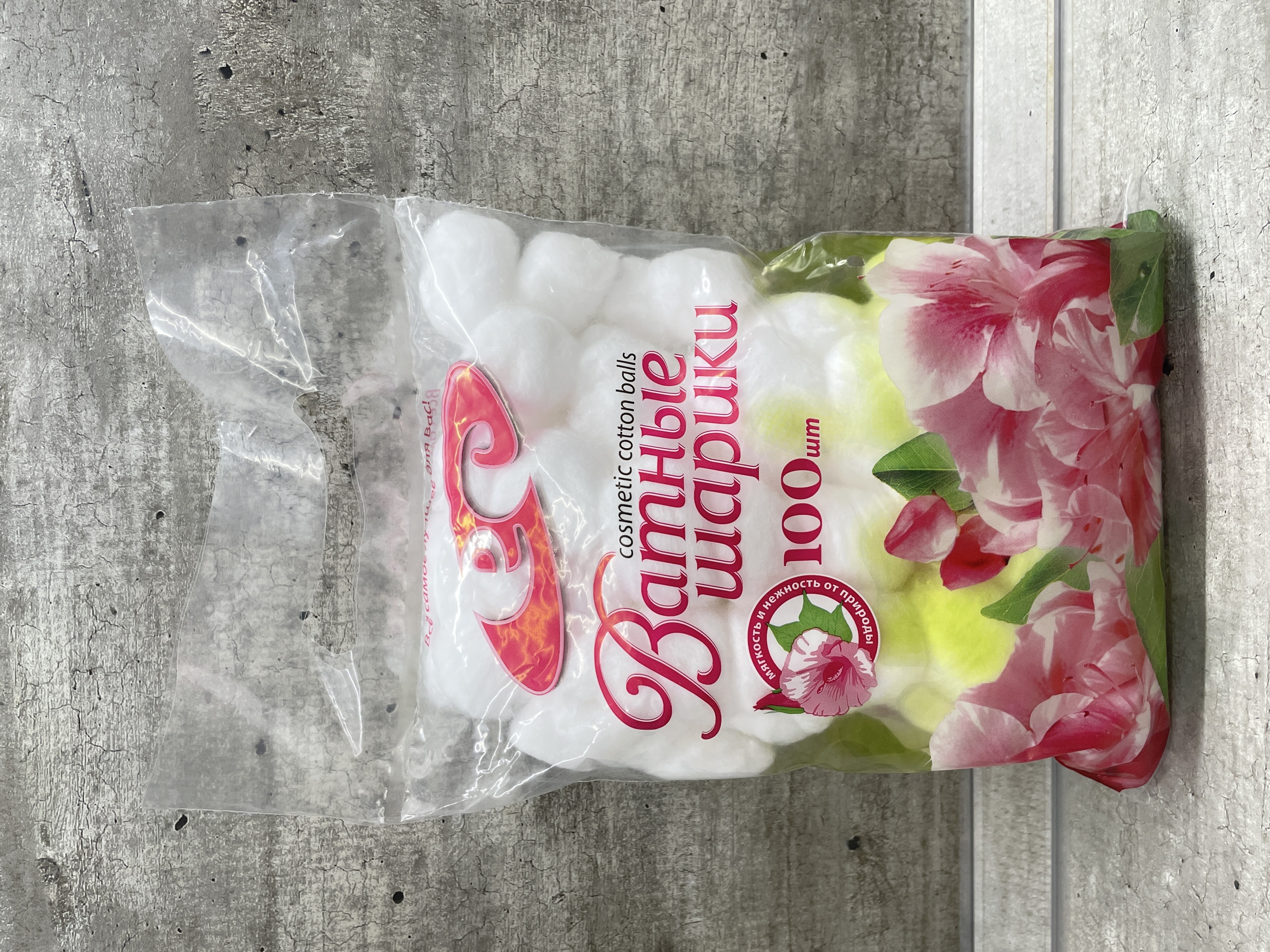 Белые шарики ватные косметические нестерильные, п/эт пакет, 100 шт, Емельянъ Савостинъ