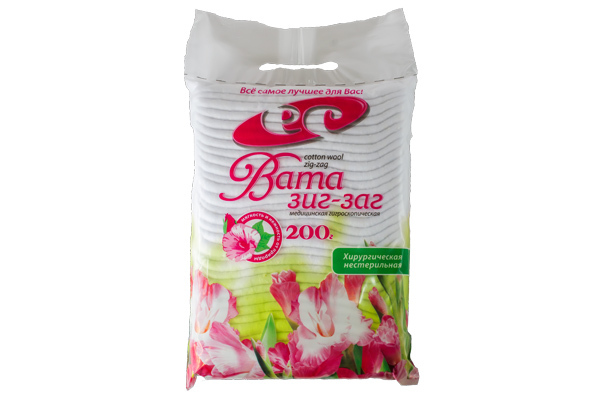 Вата мед. ЗИГ-ЗАГ фас. по 200 г. (2 уп.)