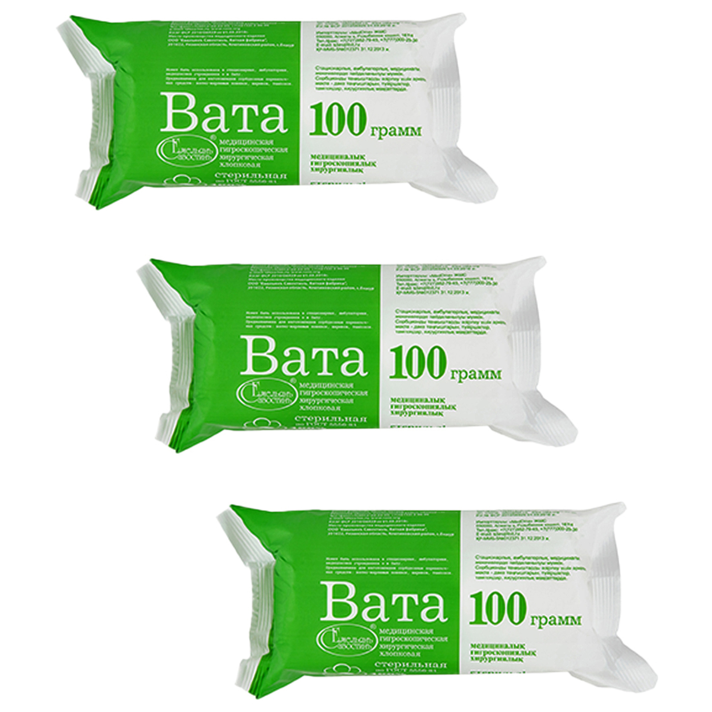 Вата медицинская хирургическая стерильная Емельянъ Савостинъ 100 г, 3 упаковки