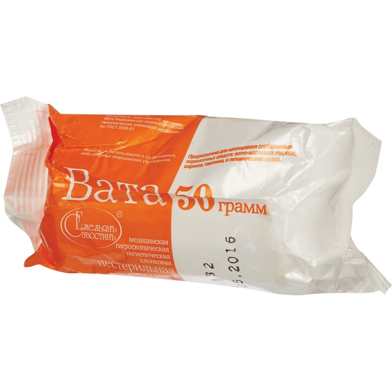 Вата хирургическая нестерильная ЕМЕЛЬЯНЪ САВОСТИНЪ 100 гр. 3 уп